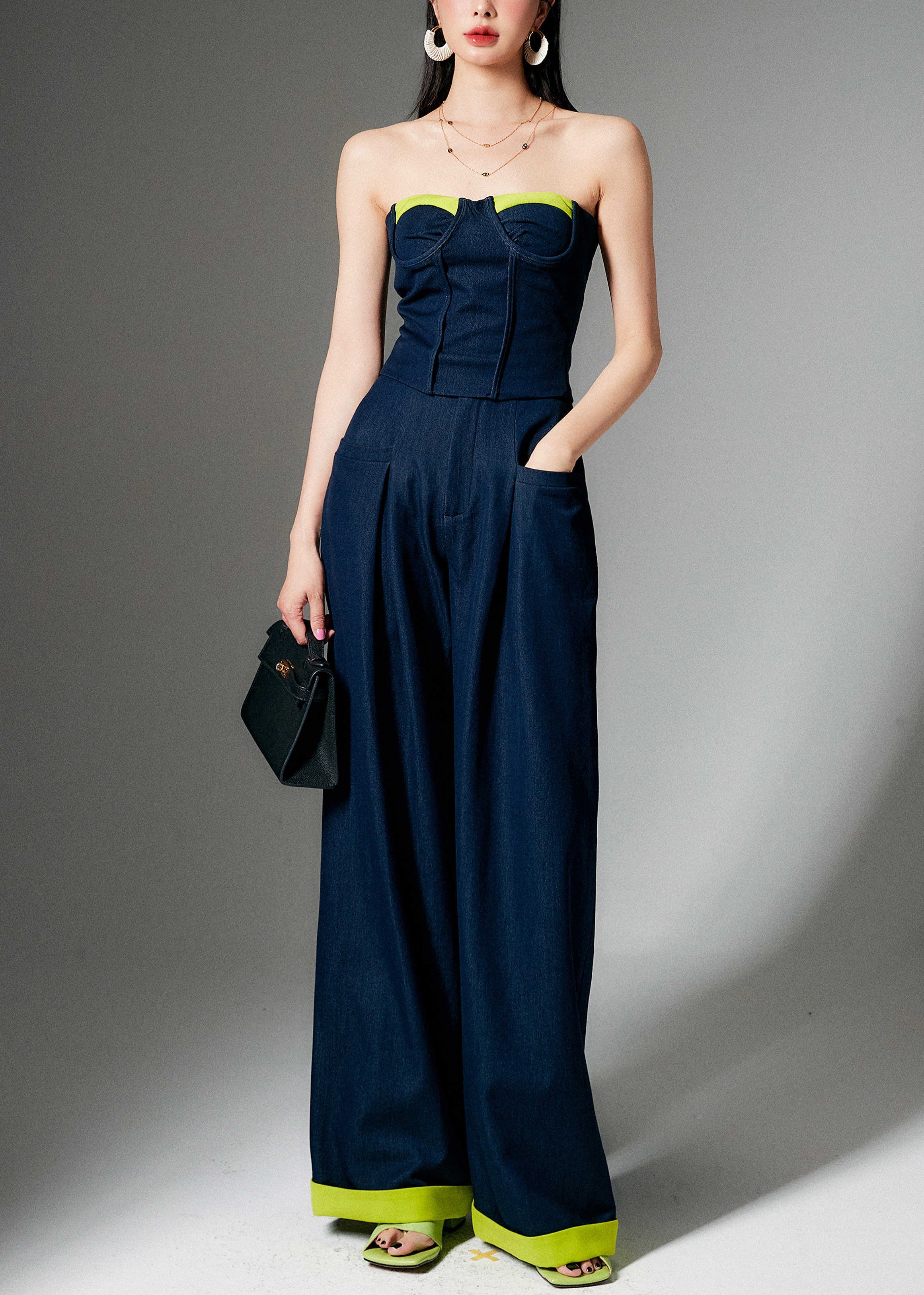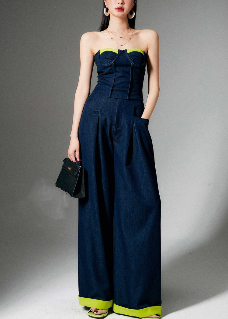 French Navy Zippered Tank And Wide Leg Pants Two Pieces Set Sleeveless