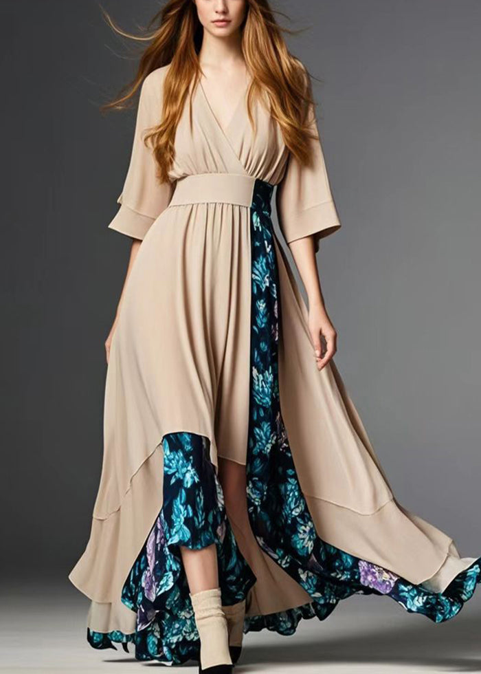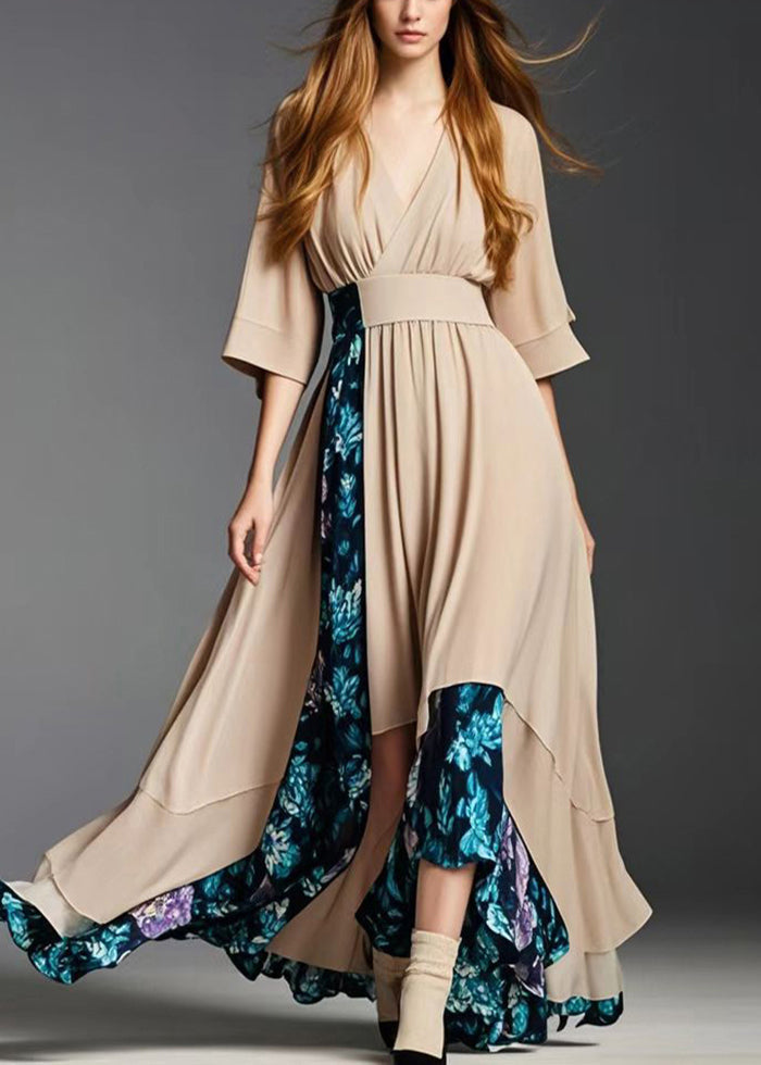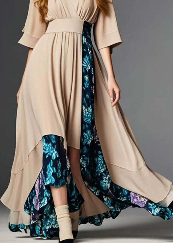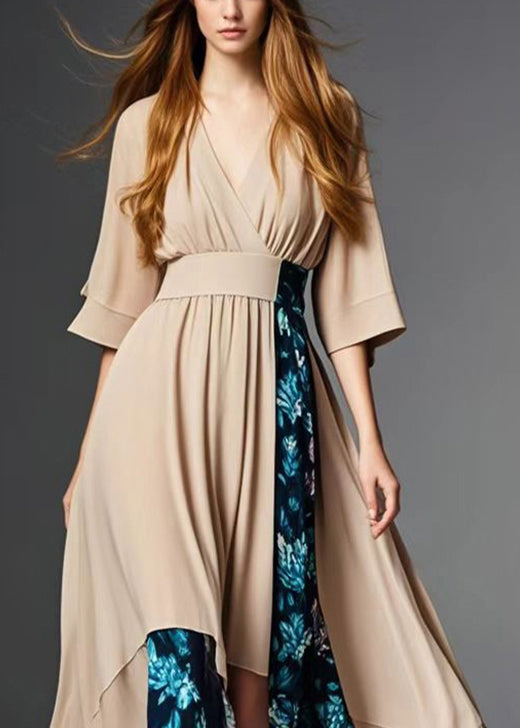 French Nude Asymmetrical Patchwork Chiffon Party Dress Summer