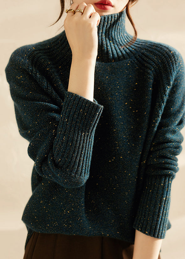 French Peacock Green Hign Neck Thick Woolen Knit Pullover Fall