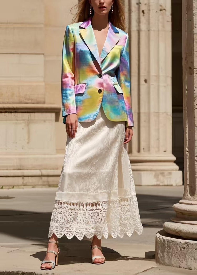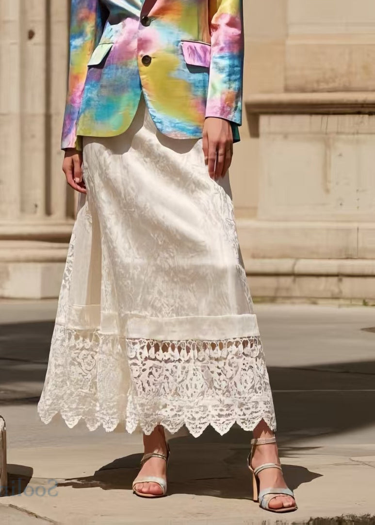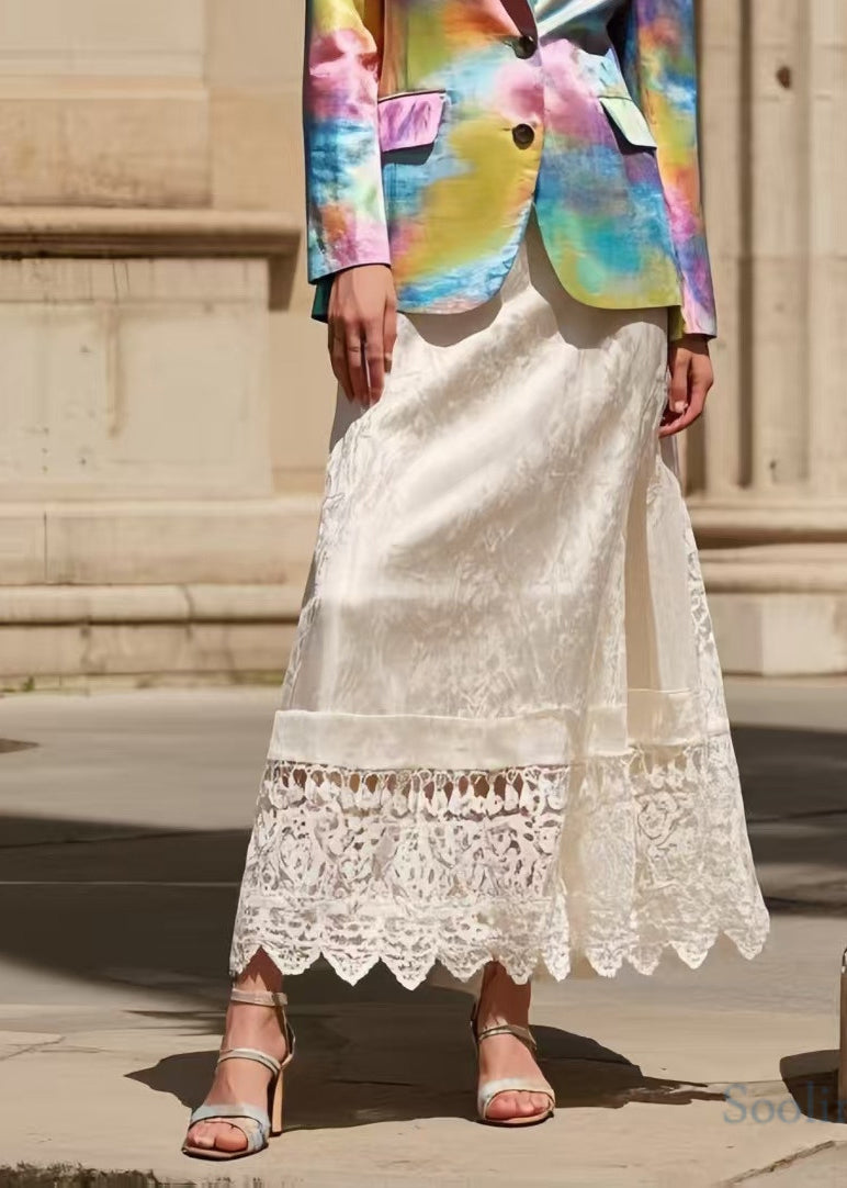 French Pearl White Silm Fit Patchwork Lace Skirt Spring