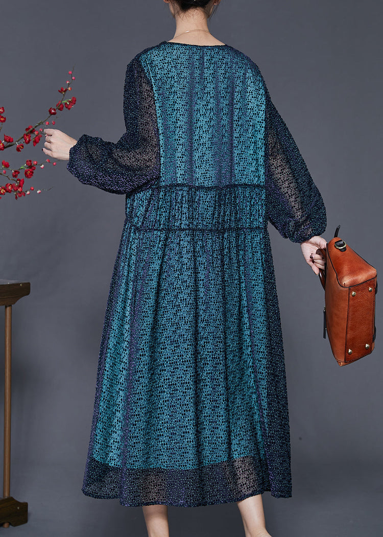 Handmade Blue V Neck Print Silk Maxi Dresses Spring