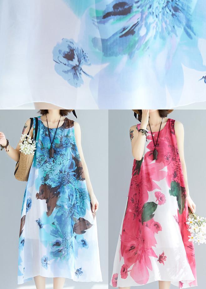 Stylish Blue Print Chiffon Sleeveless Summer Vacation Dress - Omychic