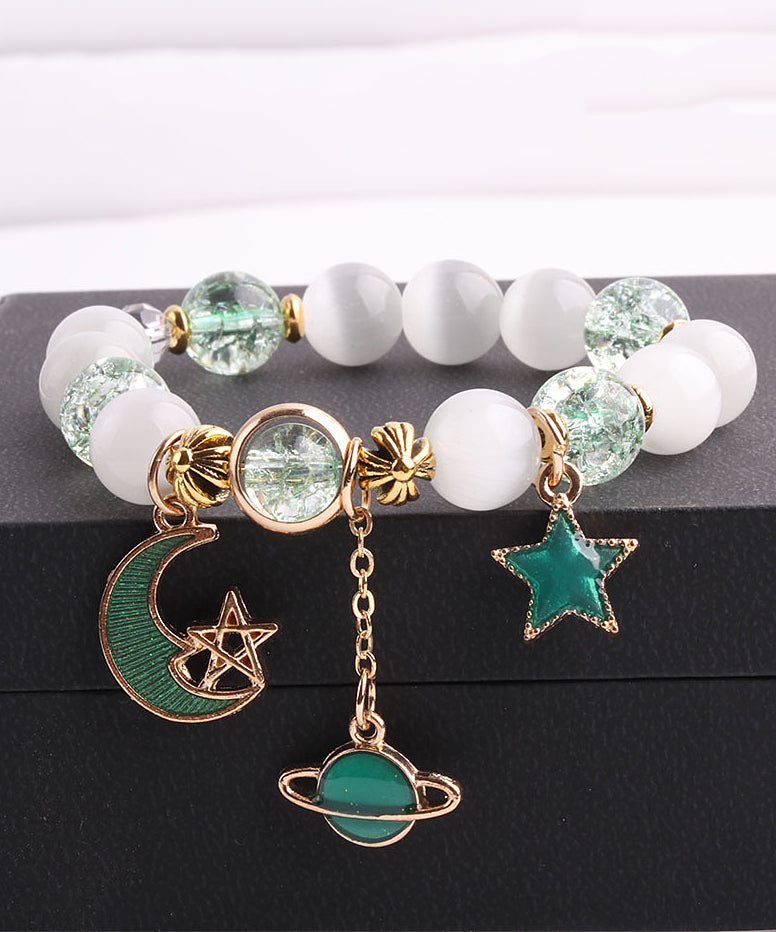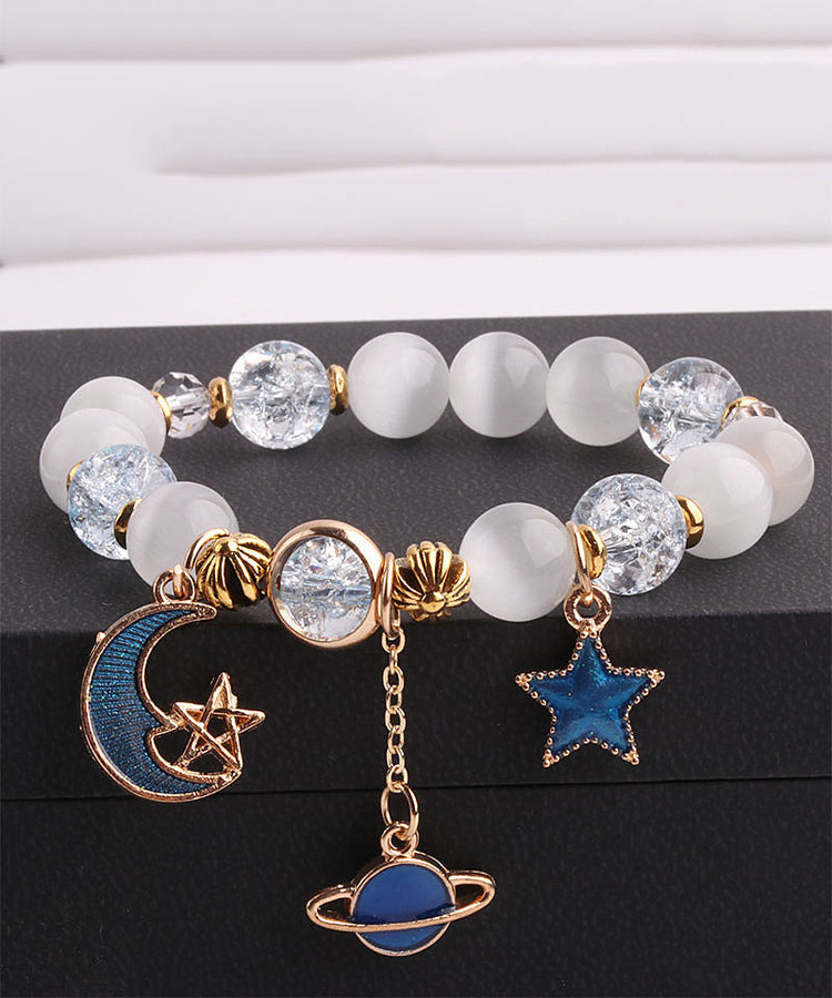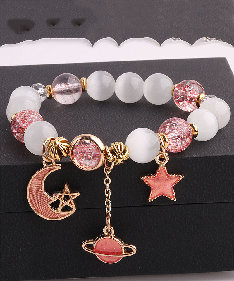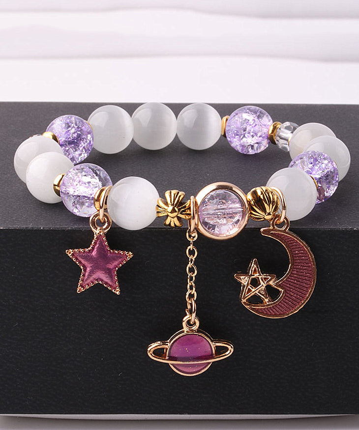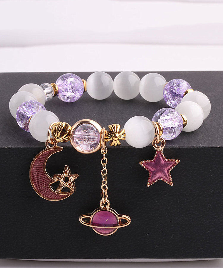 Fashion Purple Copper Alloy Crystal Coloured Glaze Star Moon Charm Bracelet
