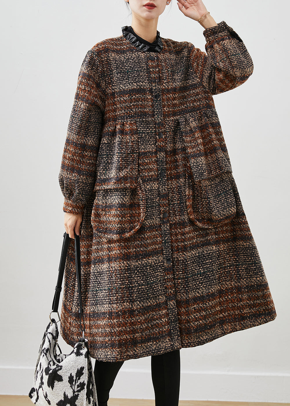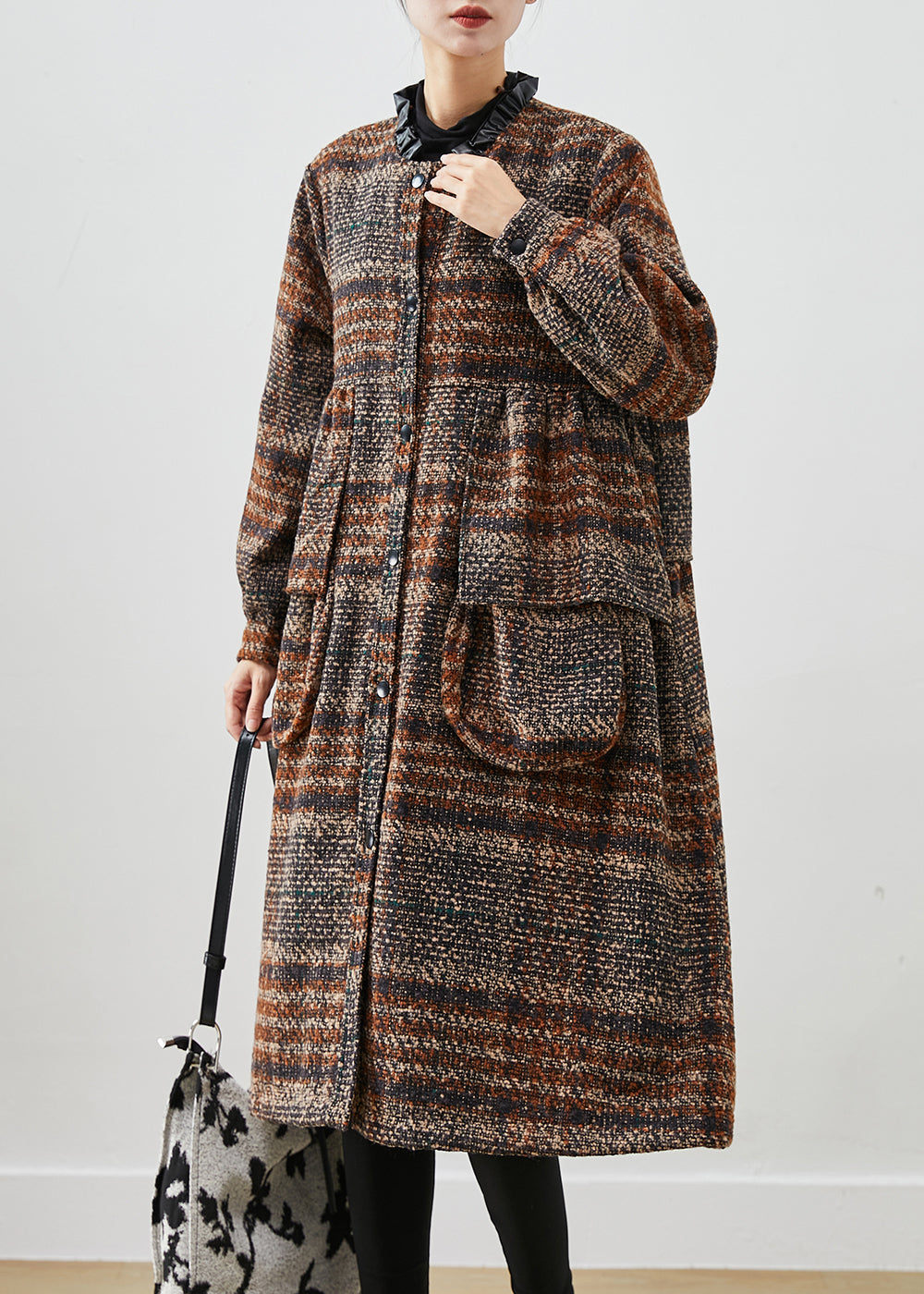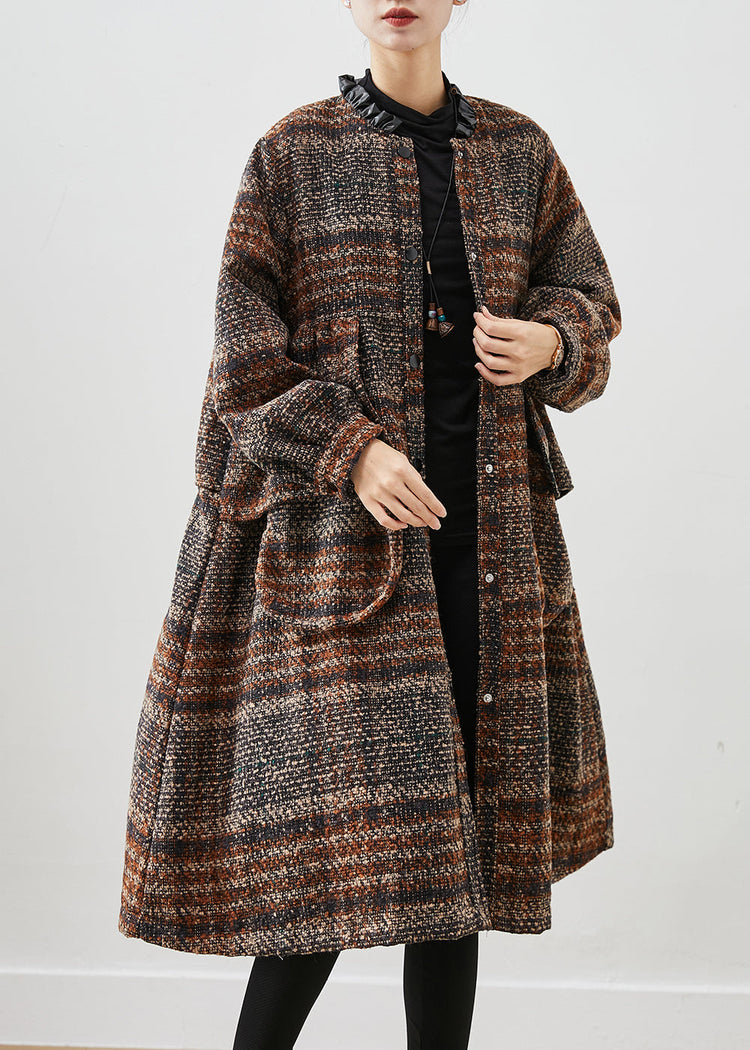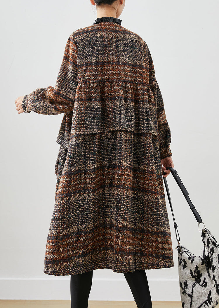 Beautiful Brown Ruffled Pockets Thick Cotton Coats Winter