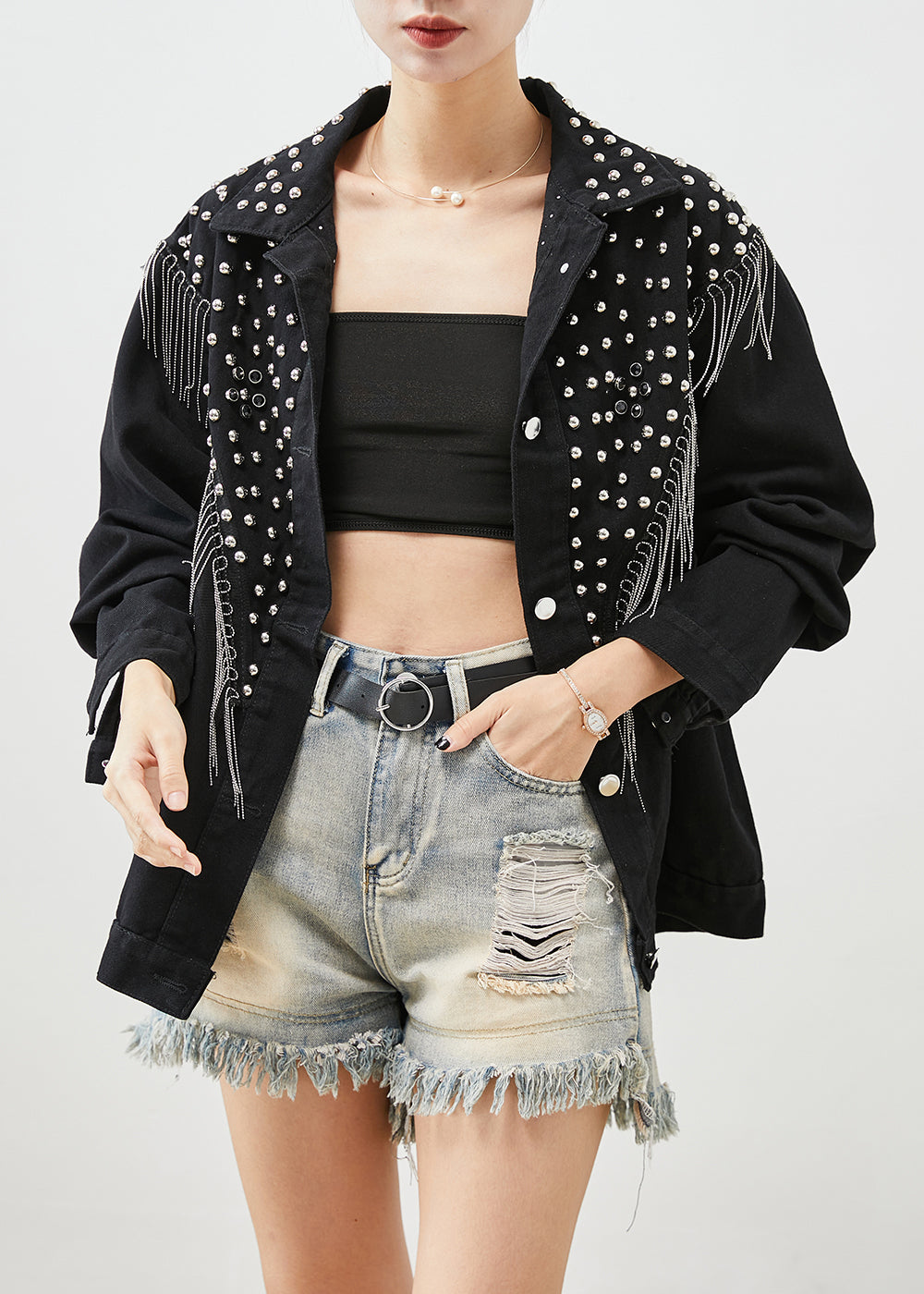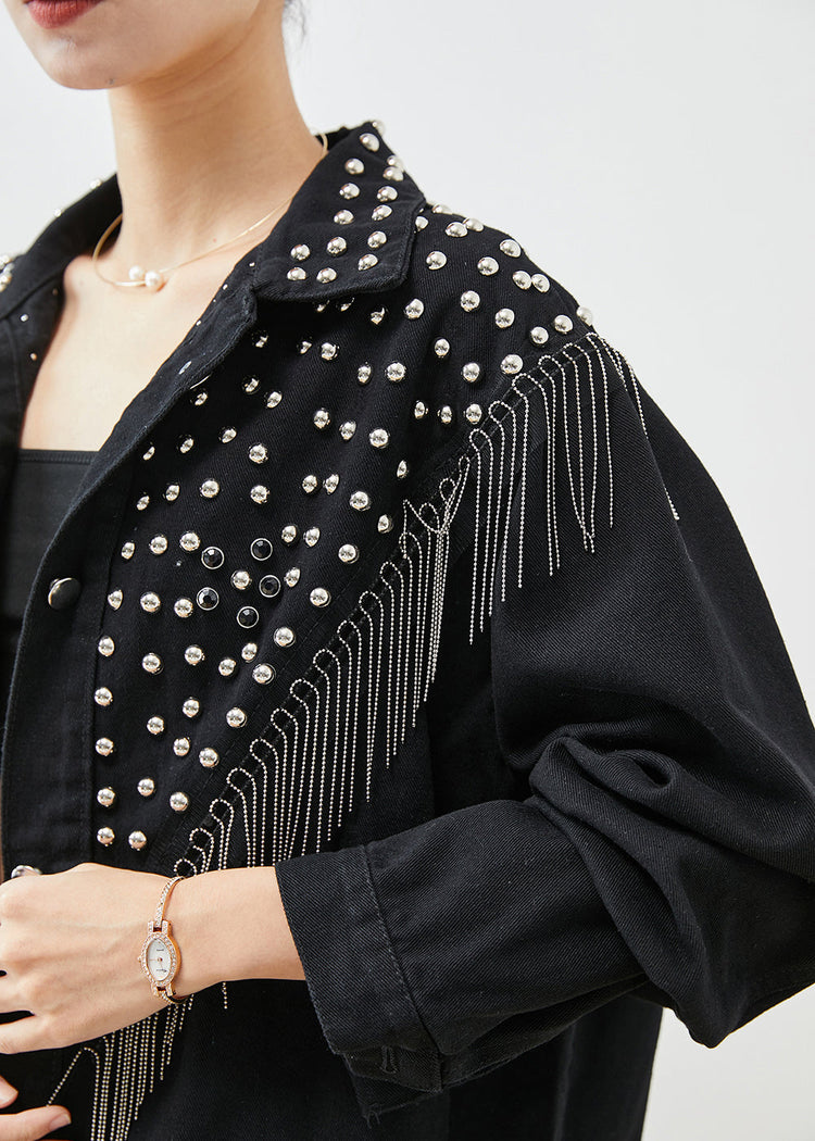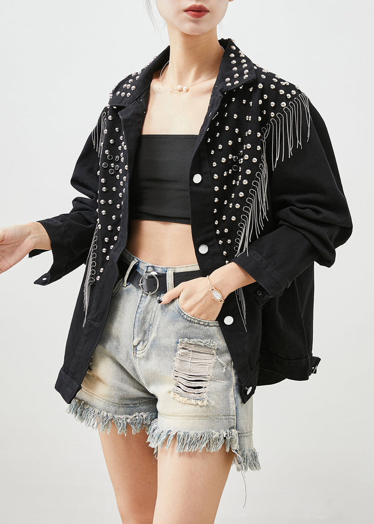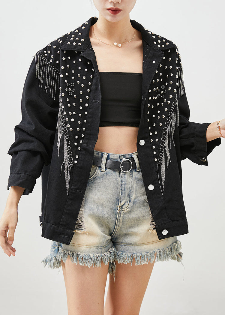 Boutique Black Tasseled Rivet Denim Jackets Fall