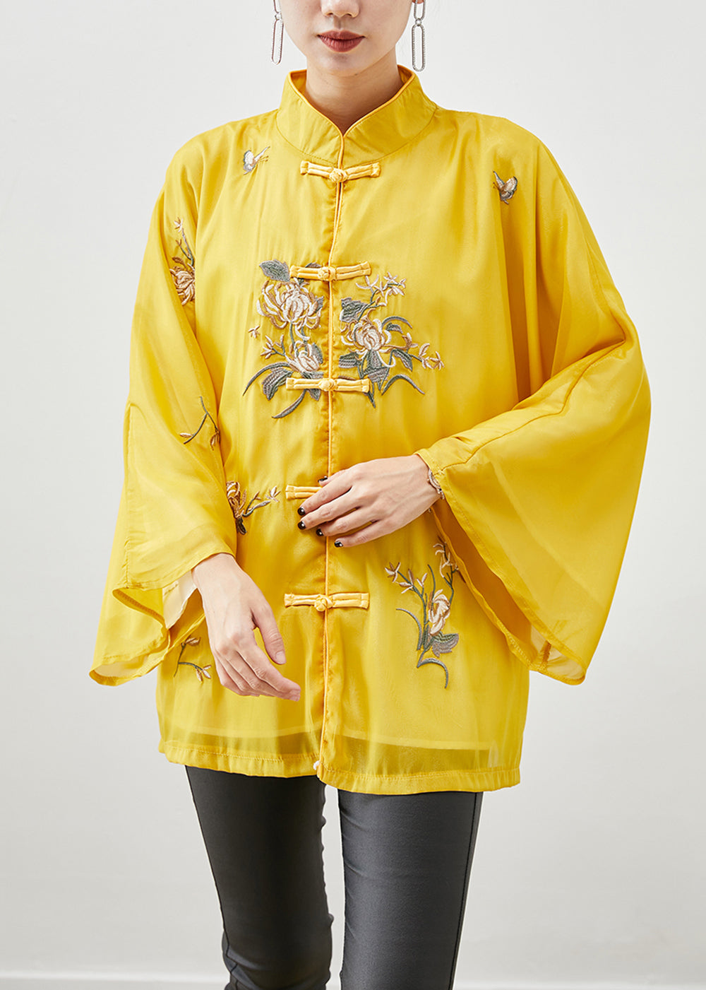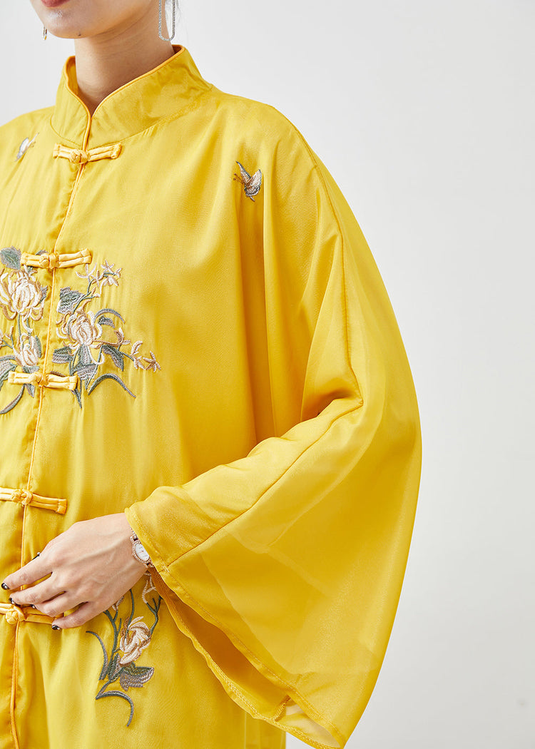 Chinese Style Yellow Embroideried Silk Jackets Fall