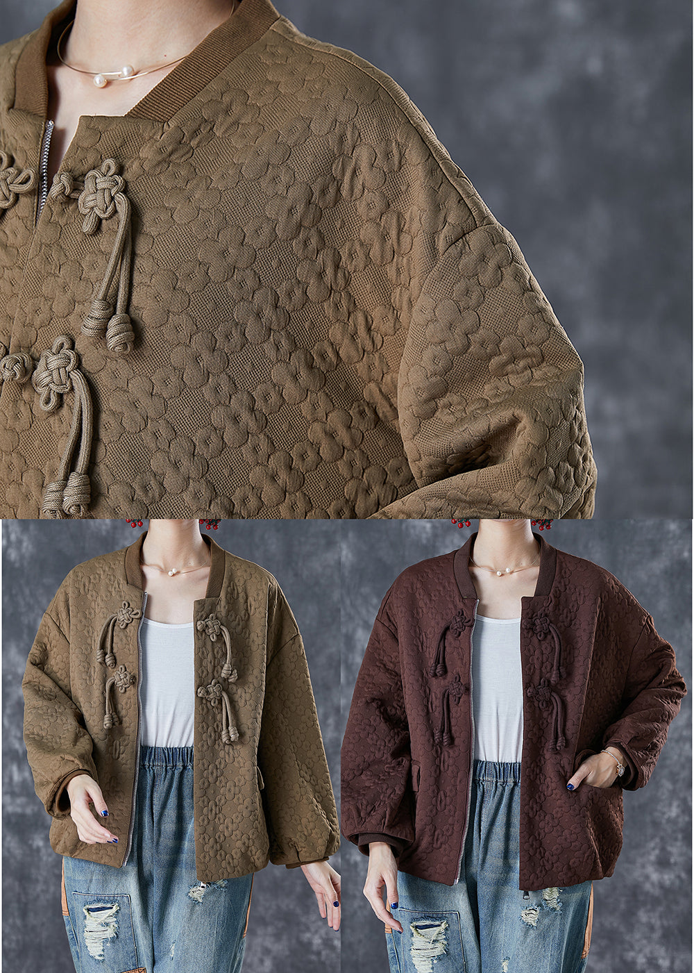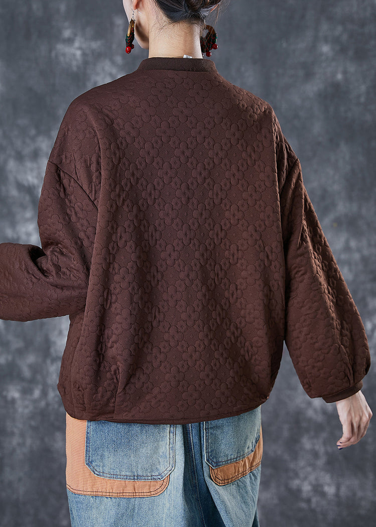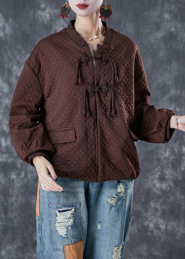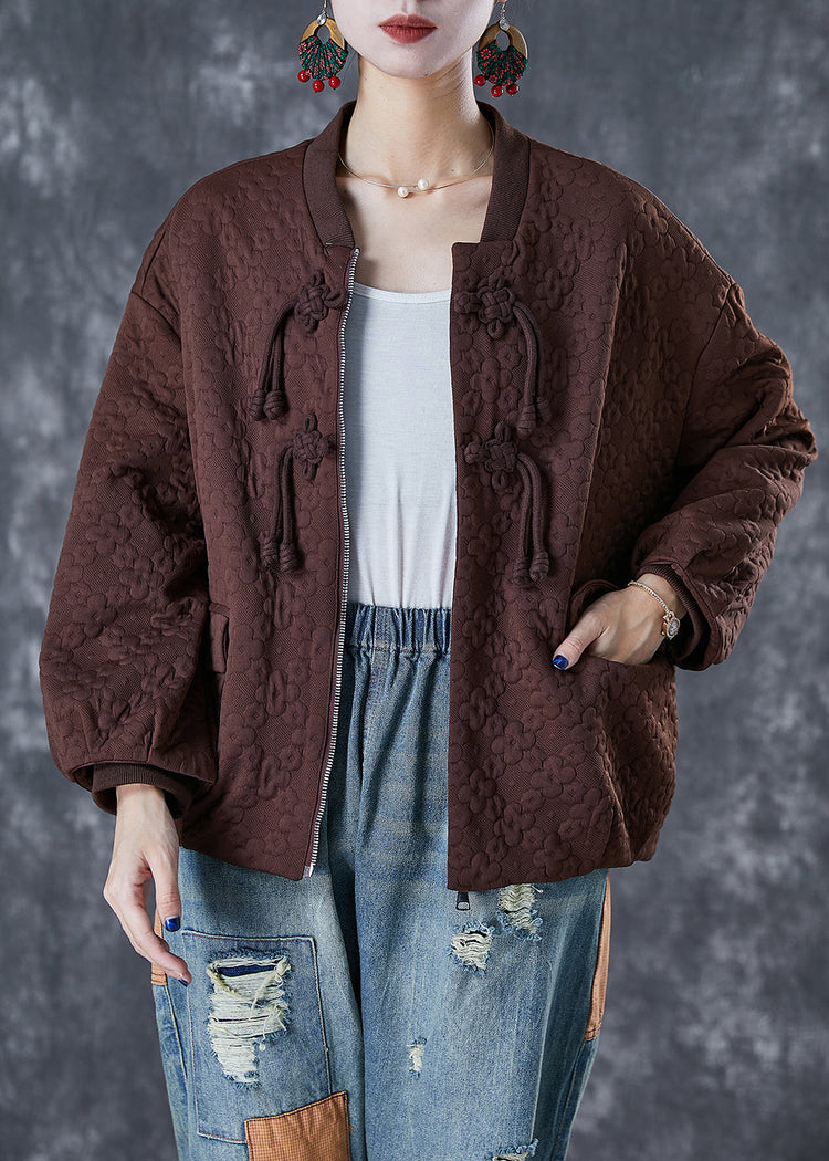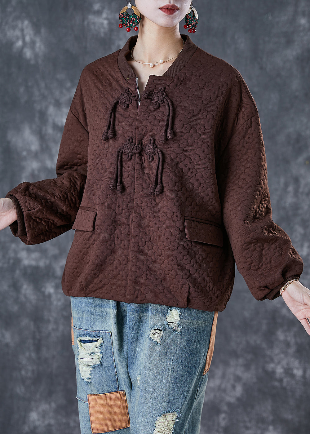 Chocolate Jacquard Cotton Jacket Tasseled Oversized Fall
