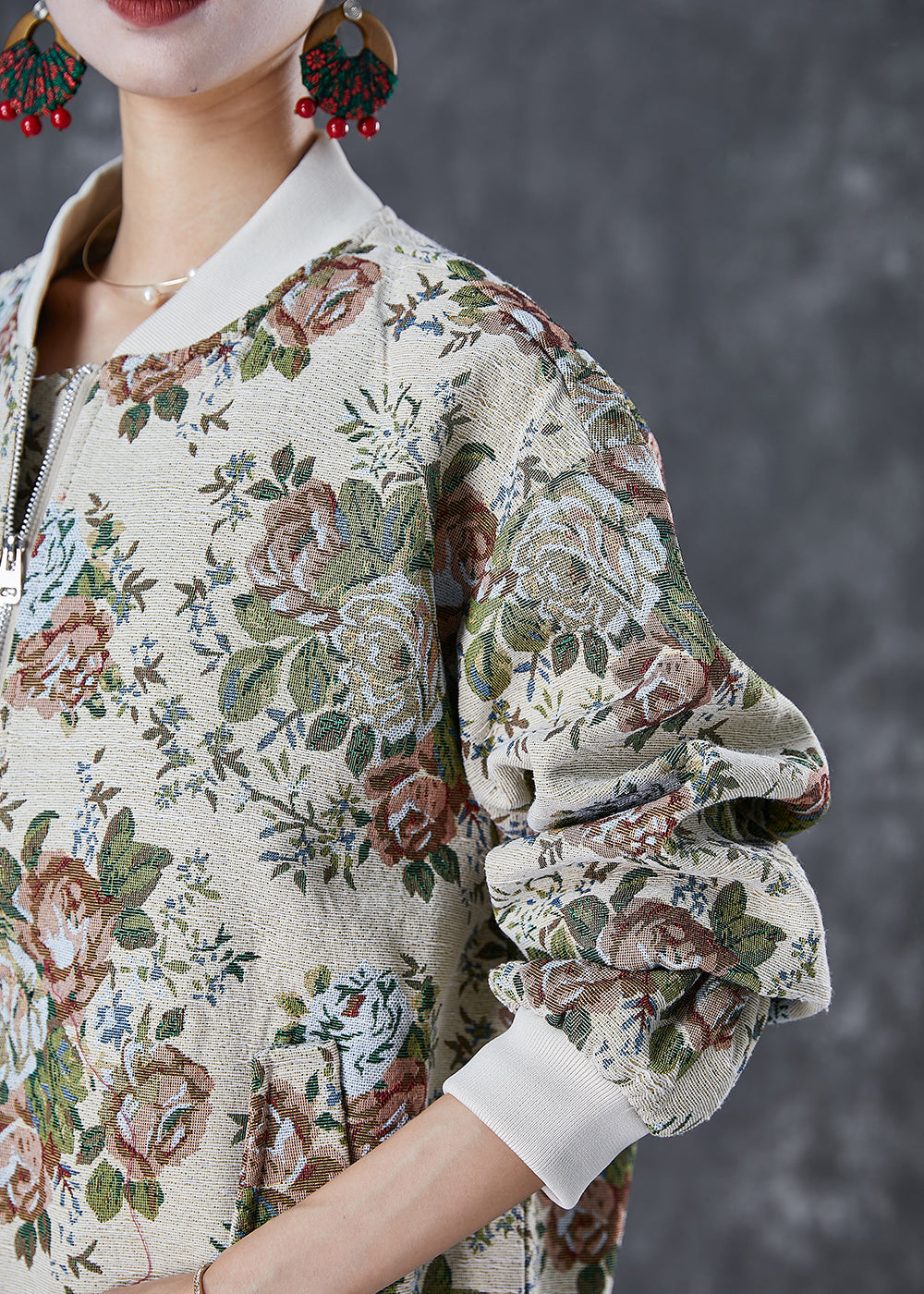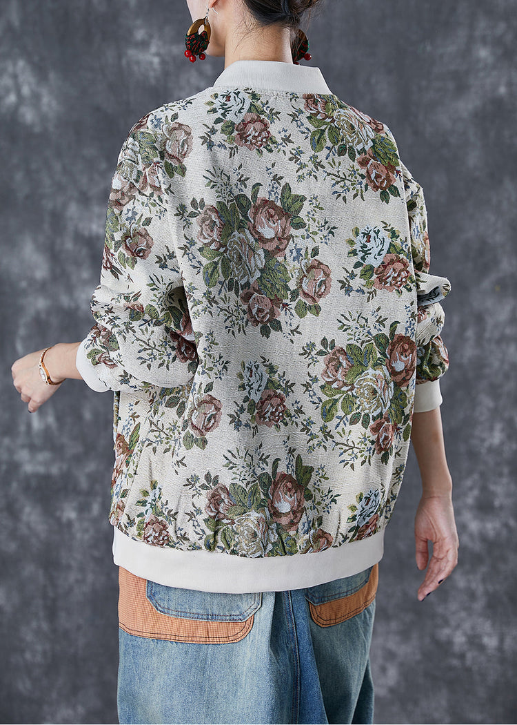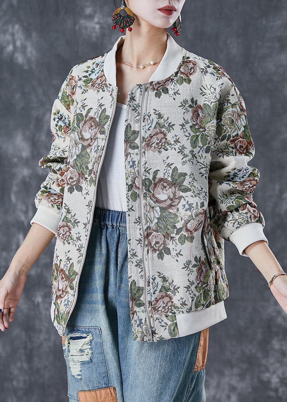 Fashion Beige Oversized Print Cotton Jackets Fall