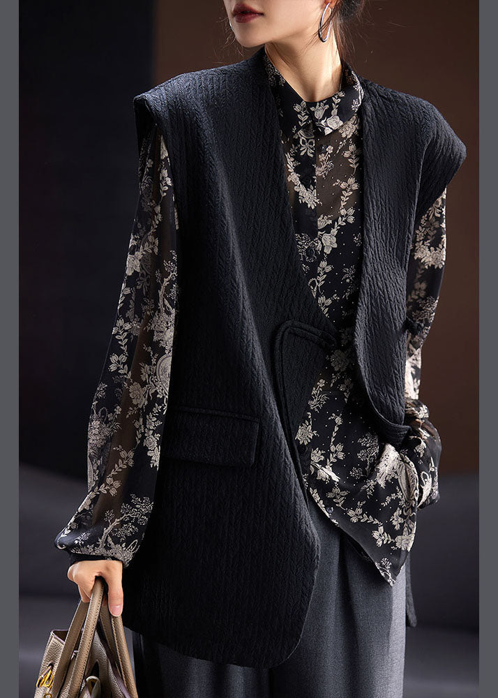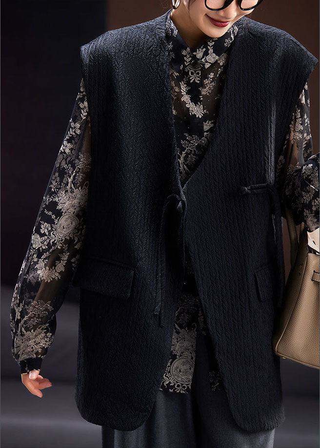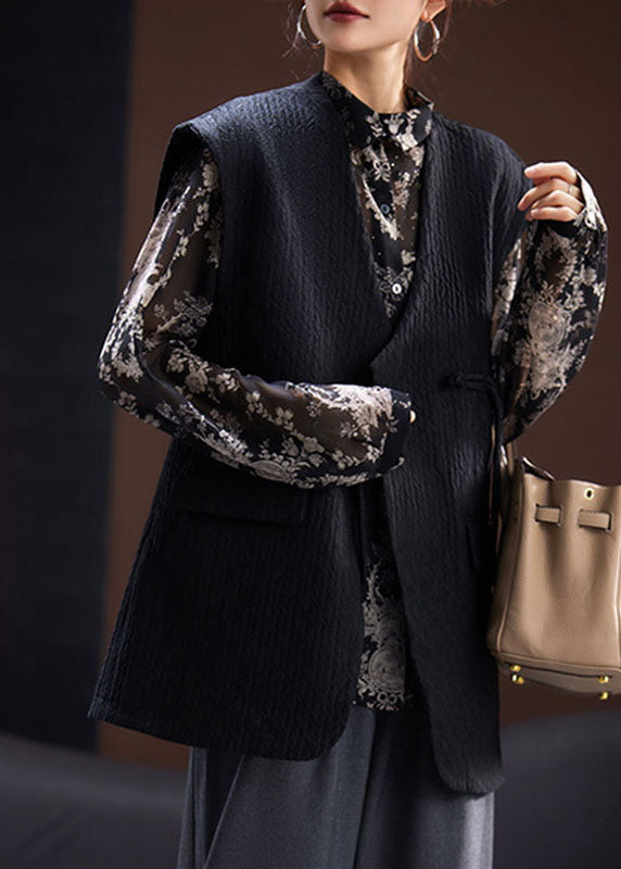 Handmade Black V Neck Button Cozy Waistcoat Fall