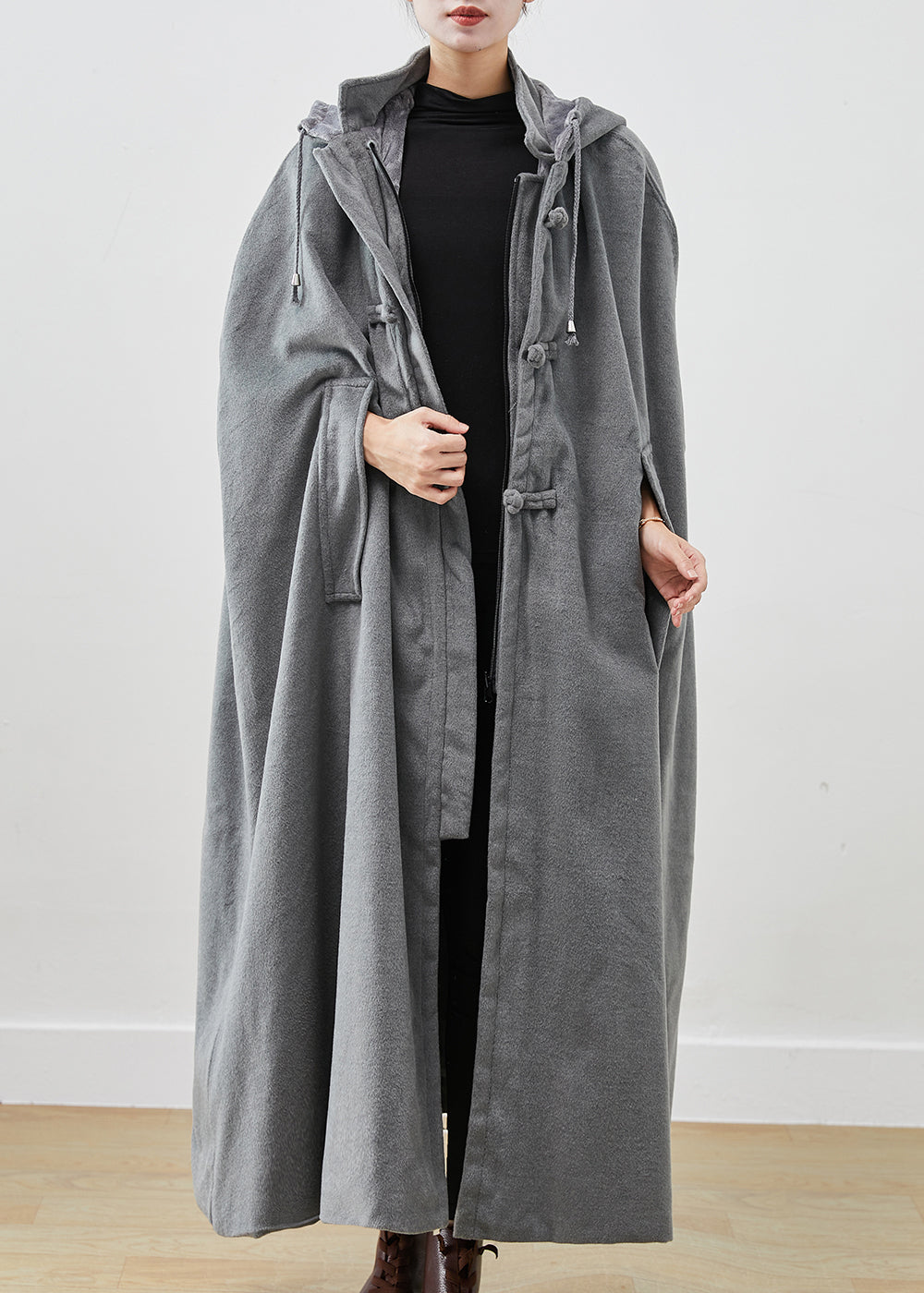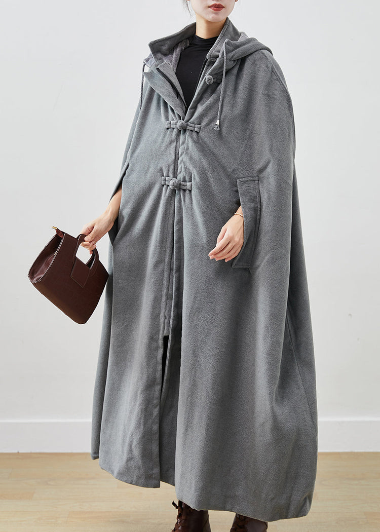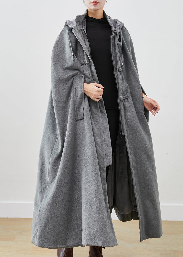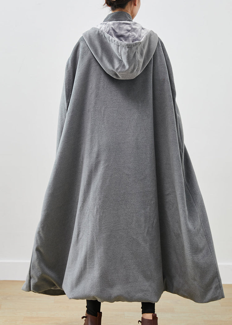 Handmade Grey Oversized Lengthen Warm Fleece Hooded Coat Cloak Sleeves