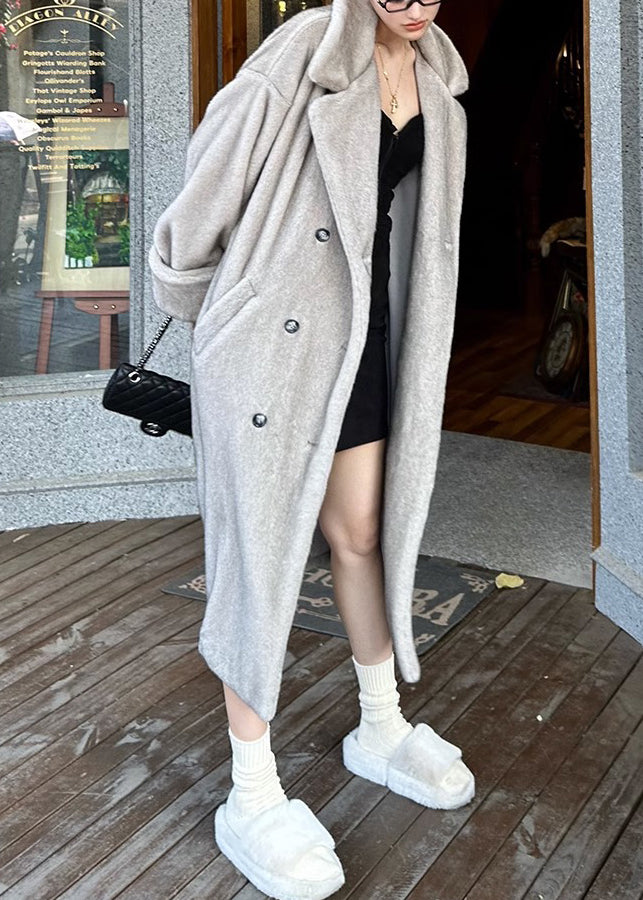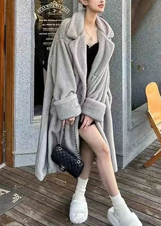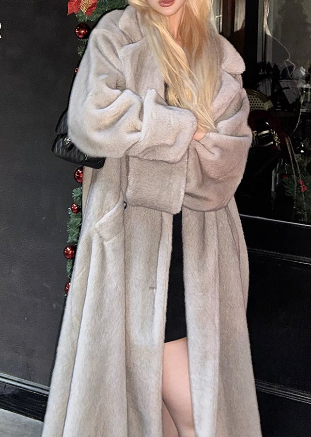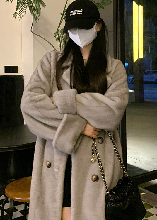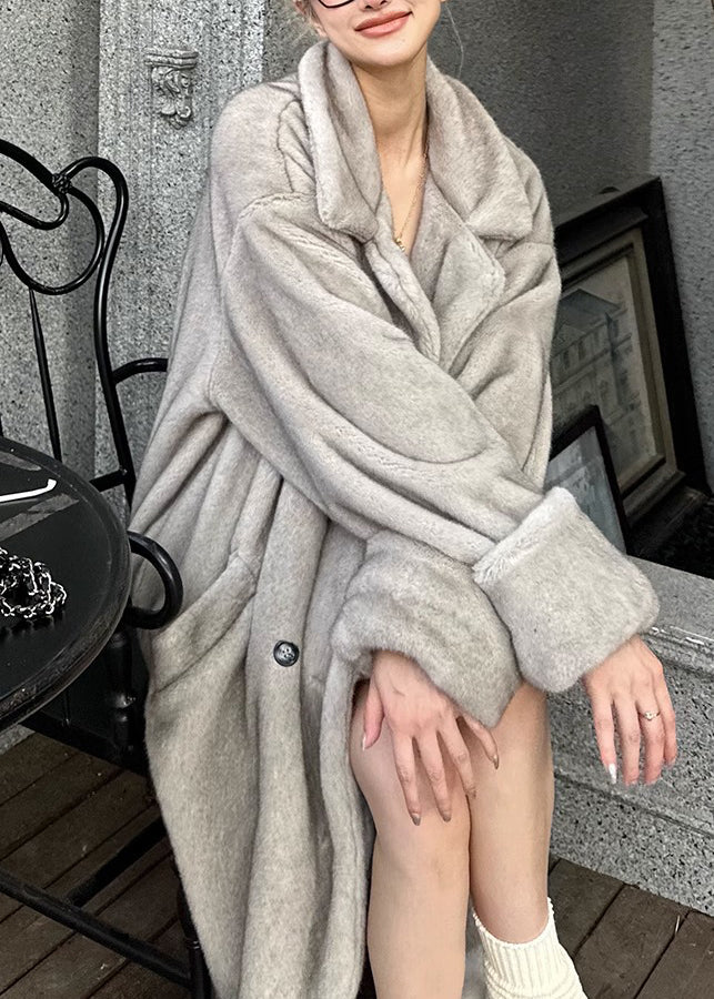 Italian Silver Brown Peter Pan Collar Pockets Patchwork Mink Velvet Coat Winter