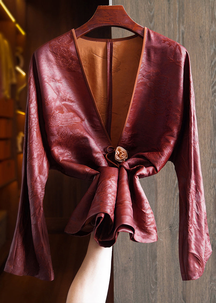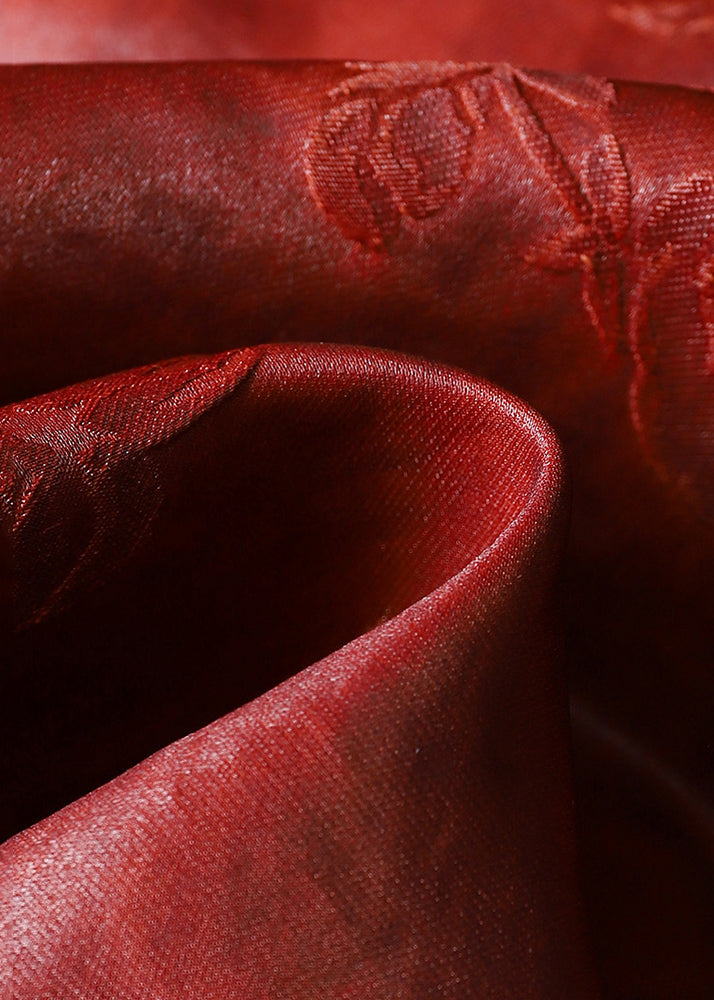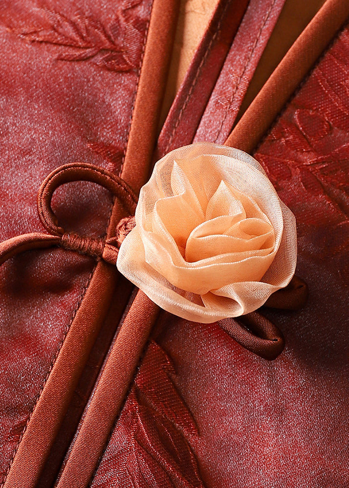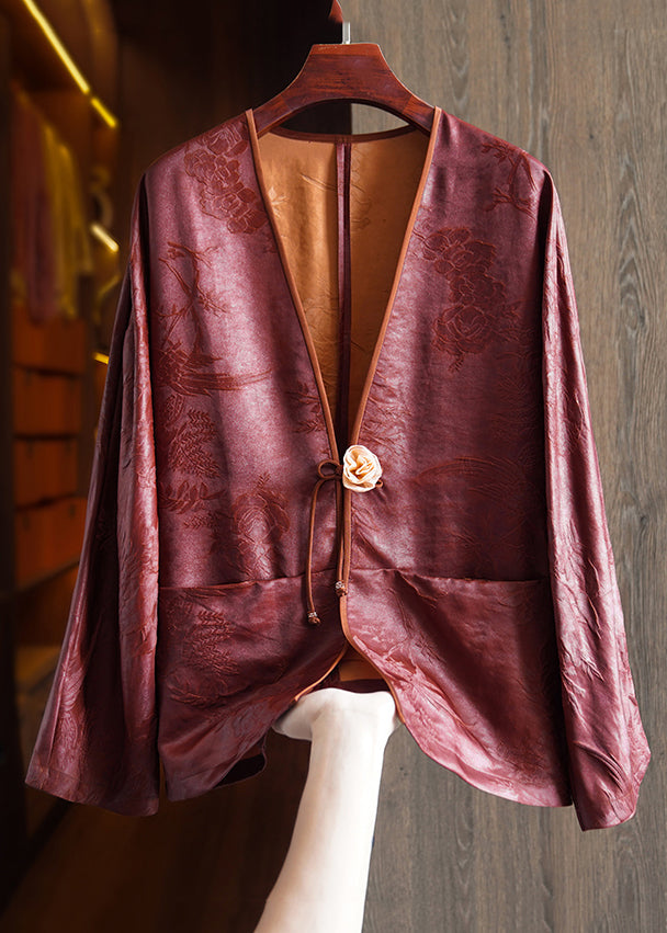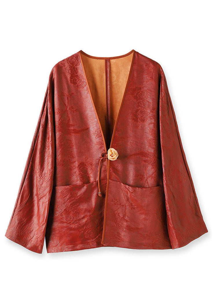 Jacquard Red Button Pockets Patchwork Silk Coats Fall