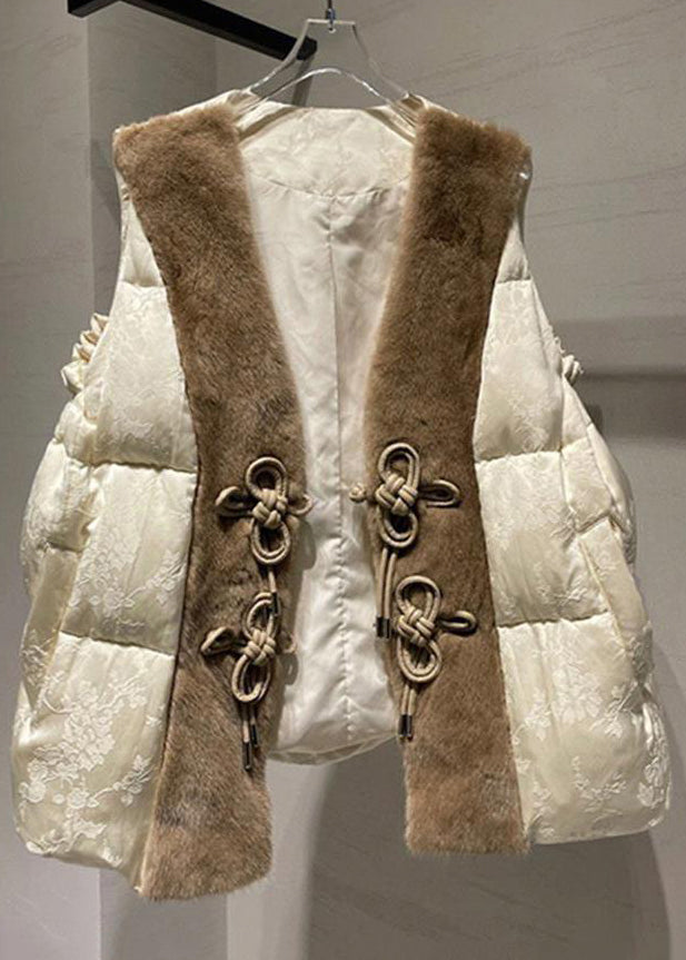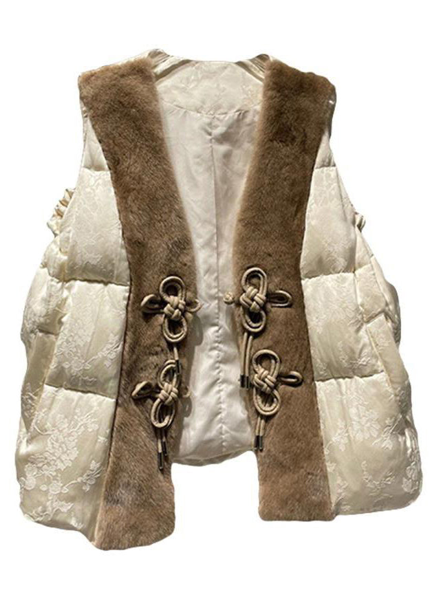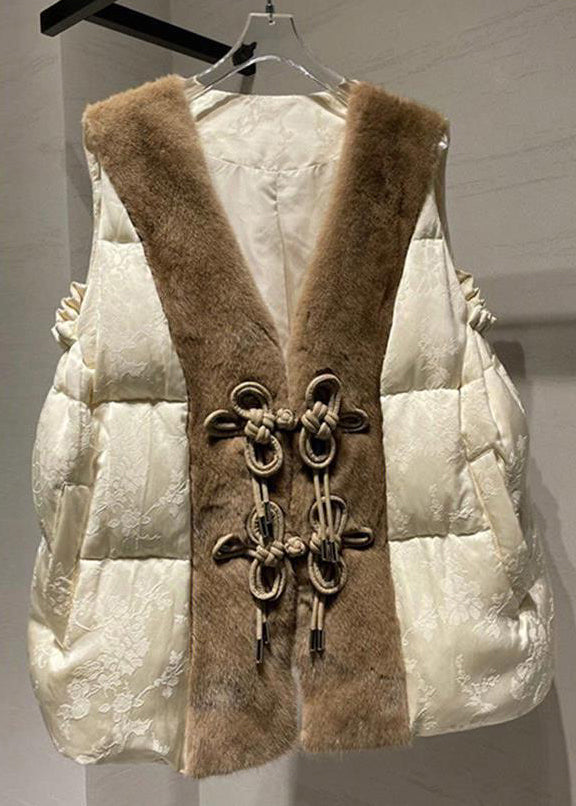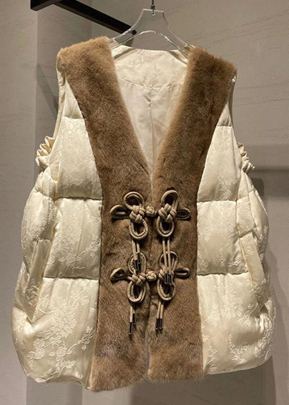 Loose Beige Button Mink Hair Patchwork Duck Down Waistcoat Sleeveless