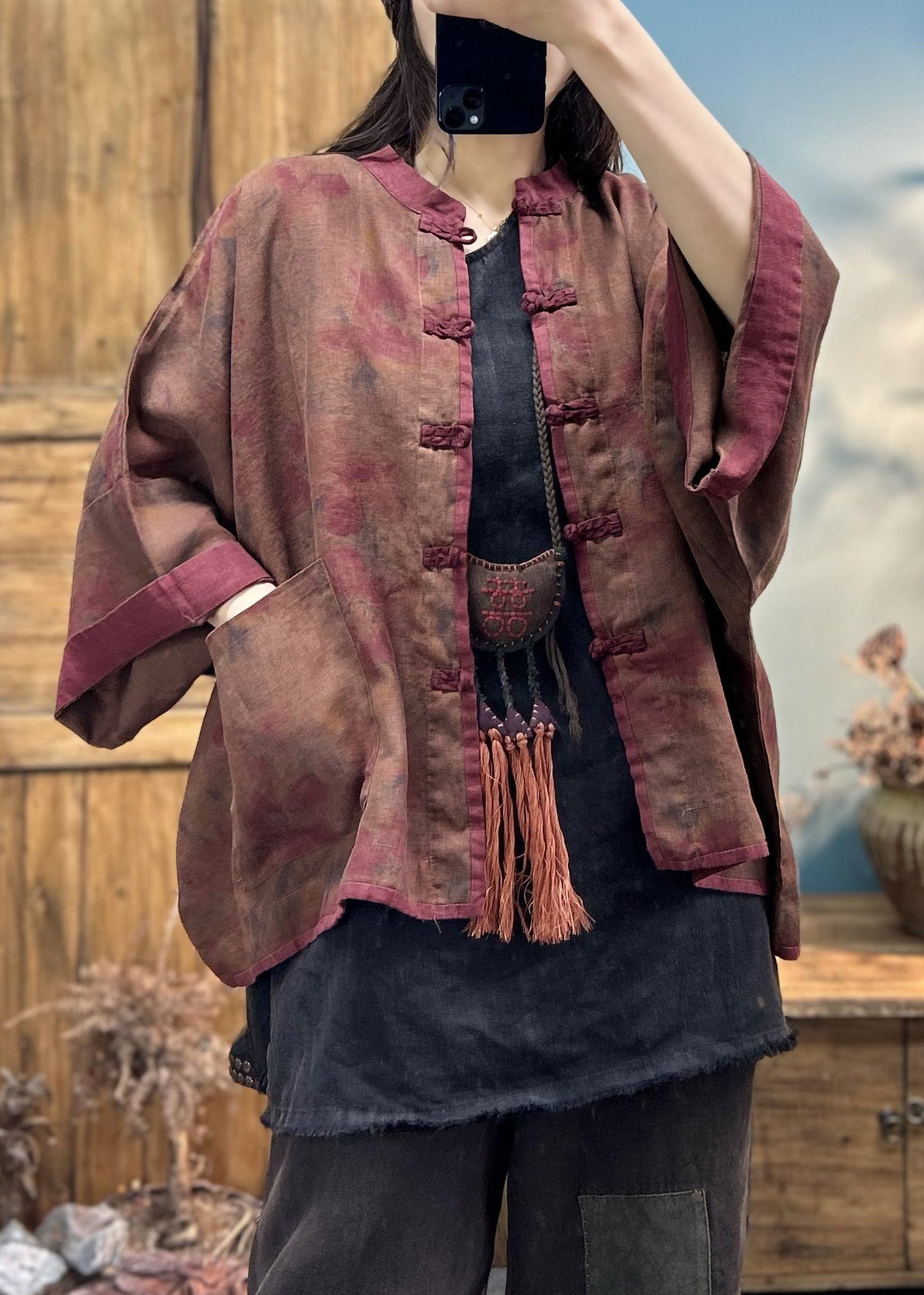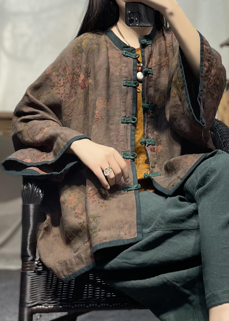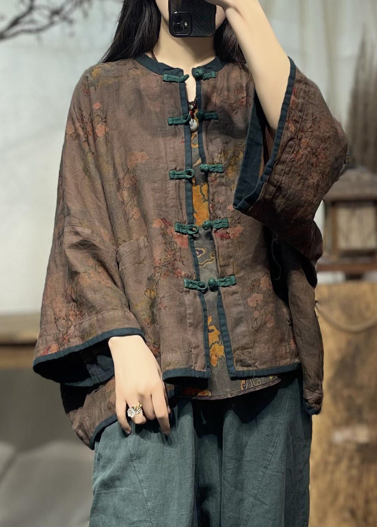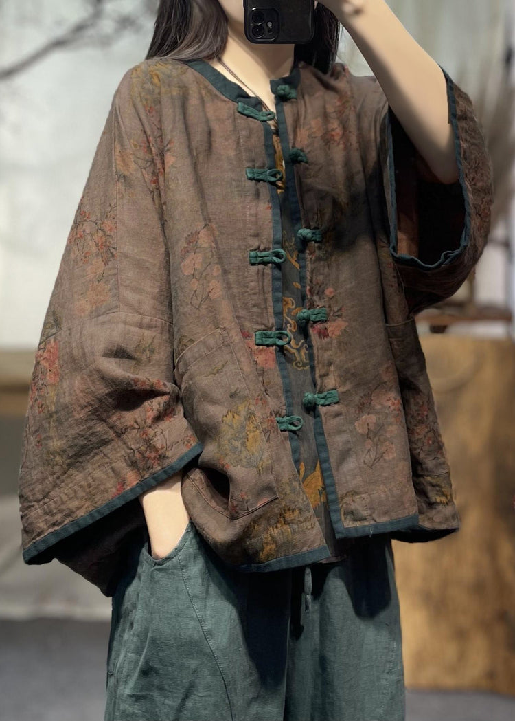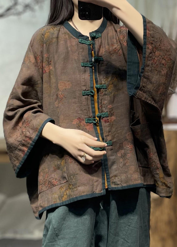 Loose Coffee Button Print Pockets Linen Coats Spring