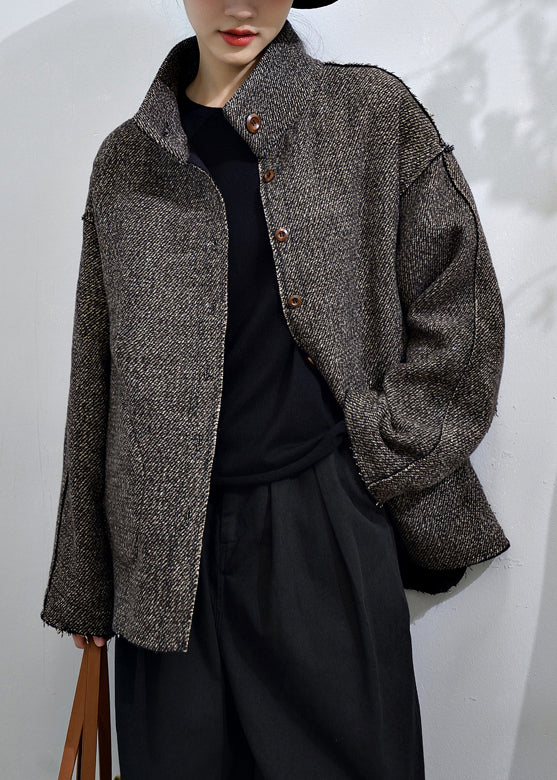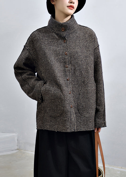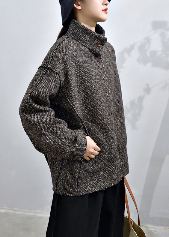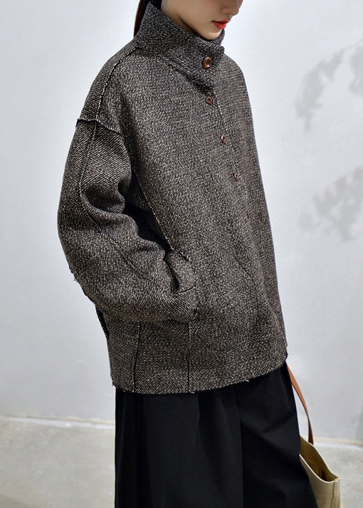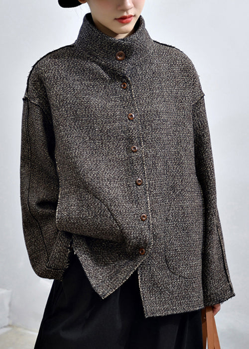 Loose Dark Gray Button Pockets Patchwork Cashmere Coats Fall