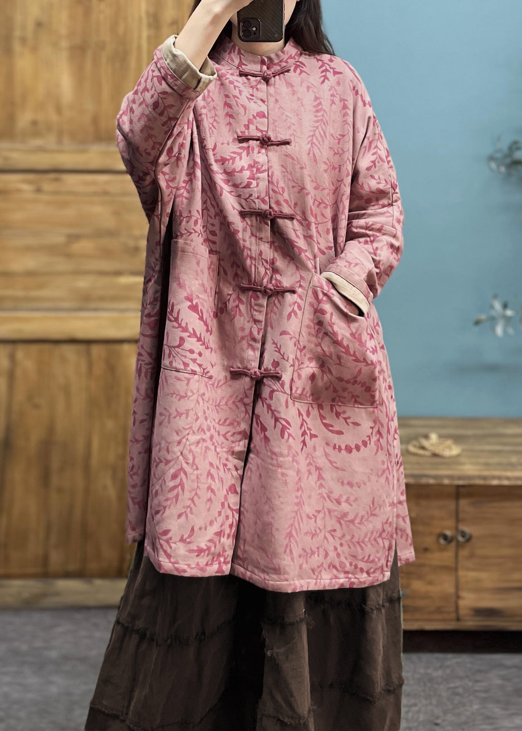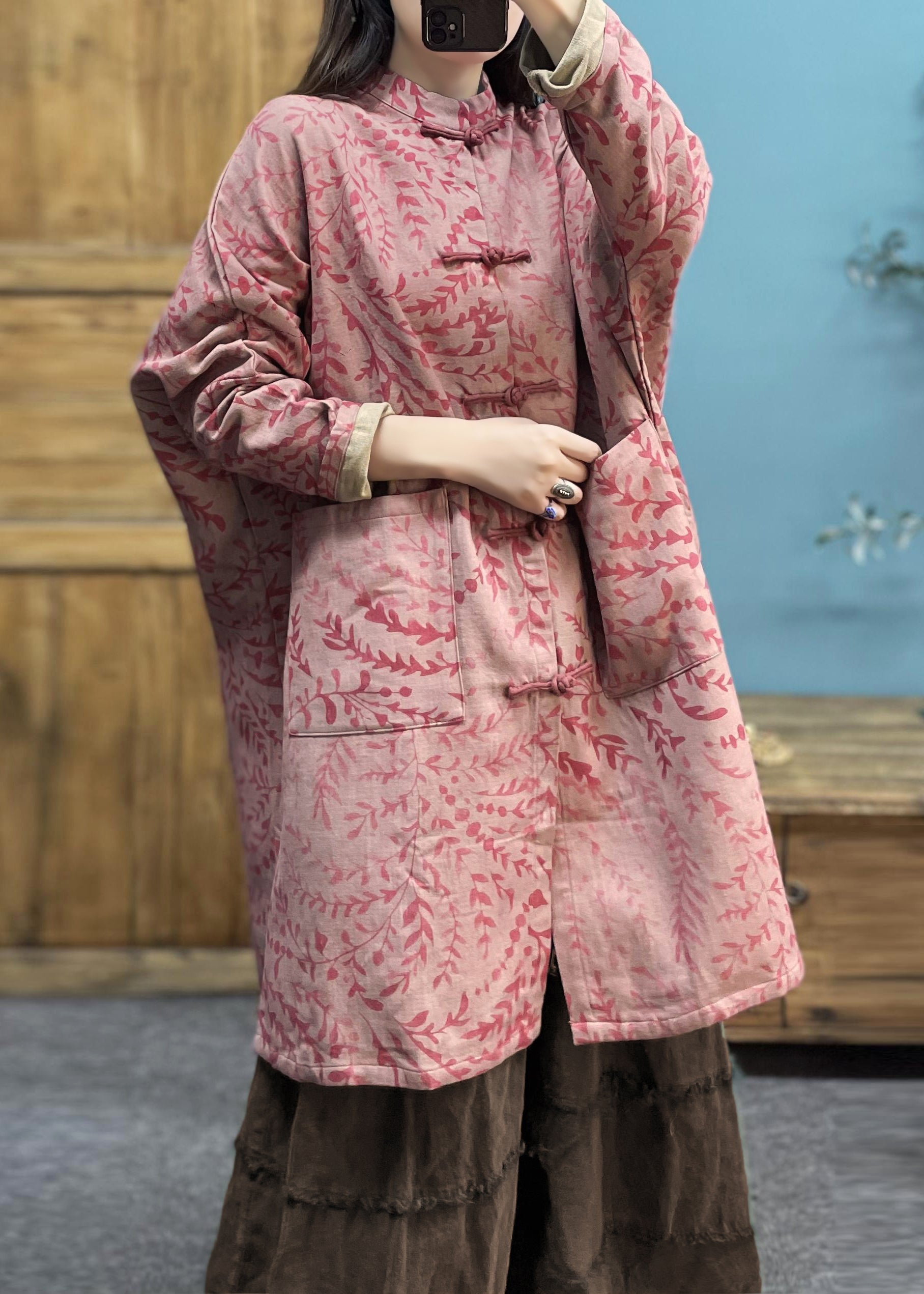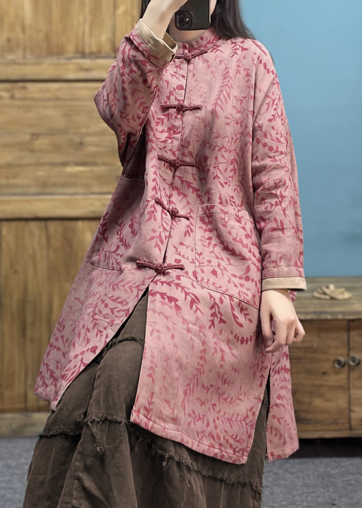 Loose Pink Button Pockets Linen Coat Long Sleeve