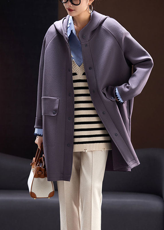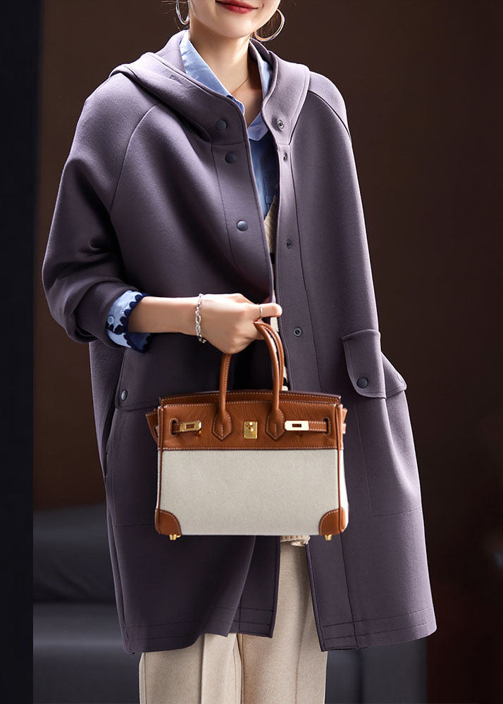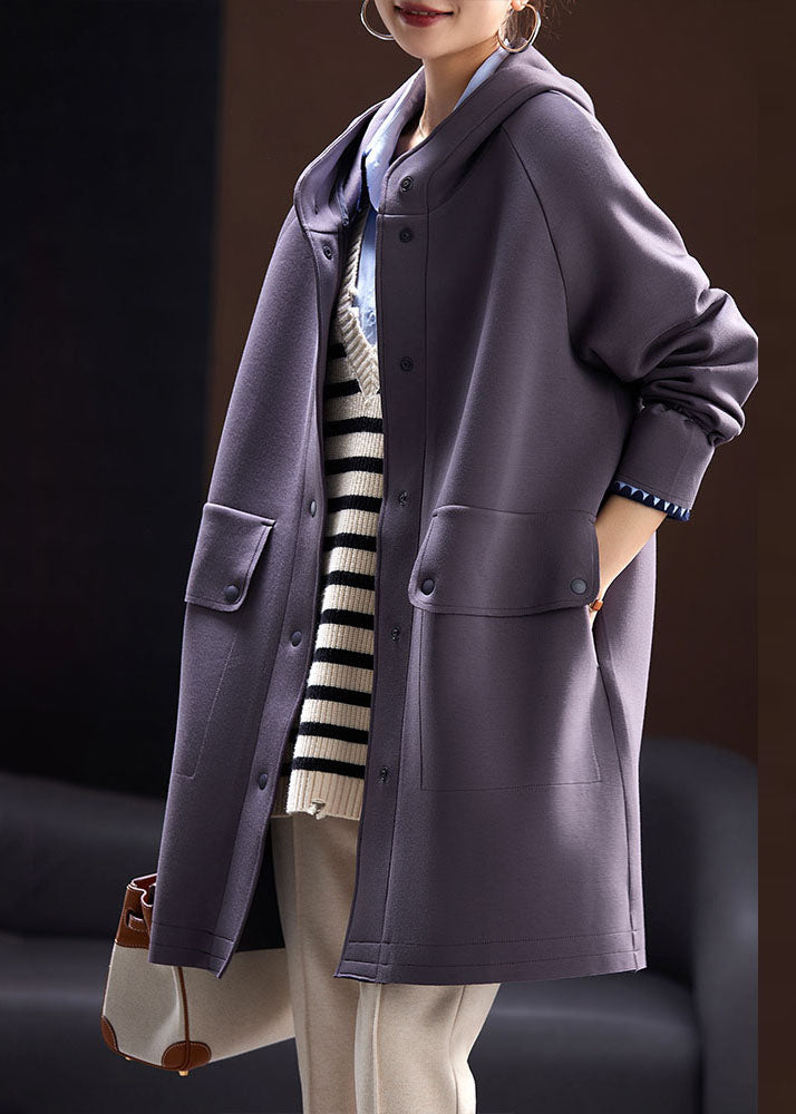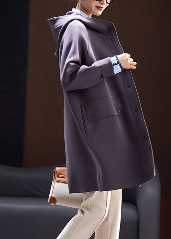 Modern Dark Grey Pockets Patchwork Button Long Hoodie Coat Fall