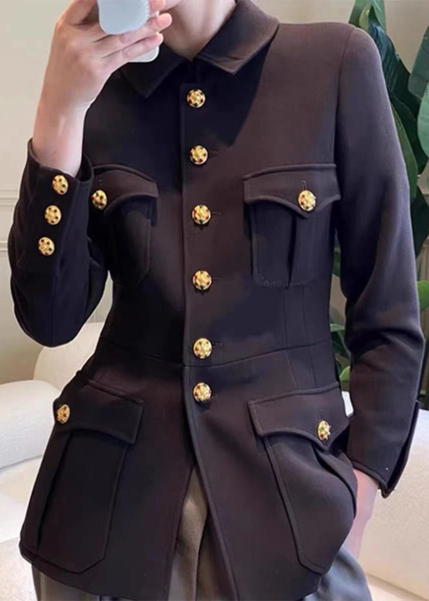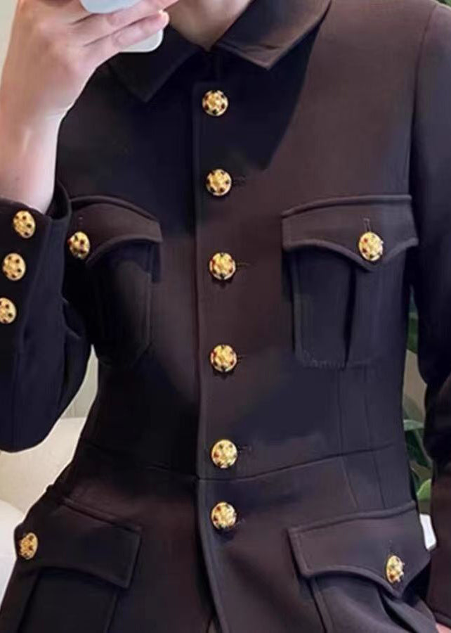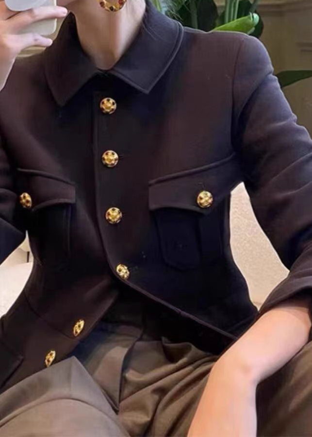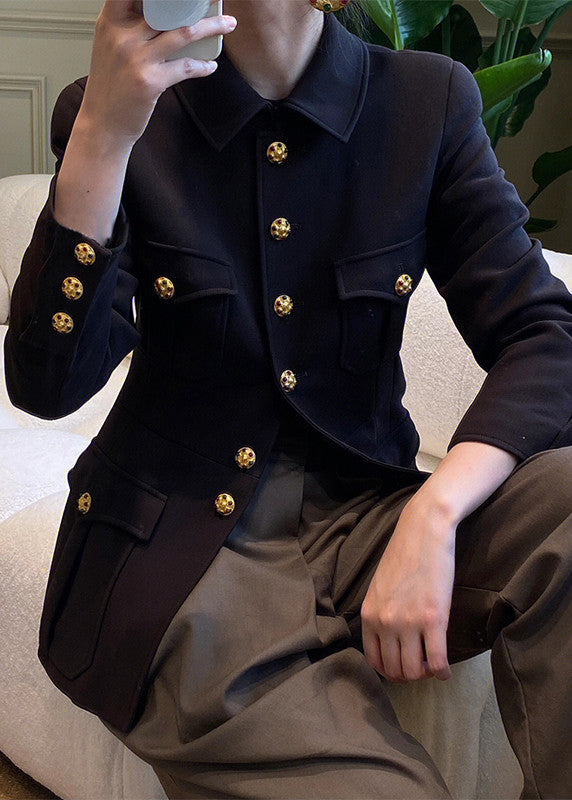 New Black Peter Pan Collar Button Patchwork Cotton Coat Fall