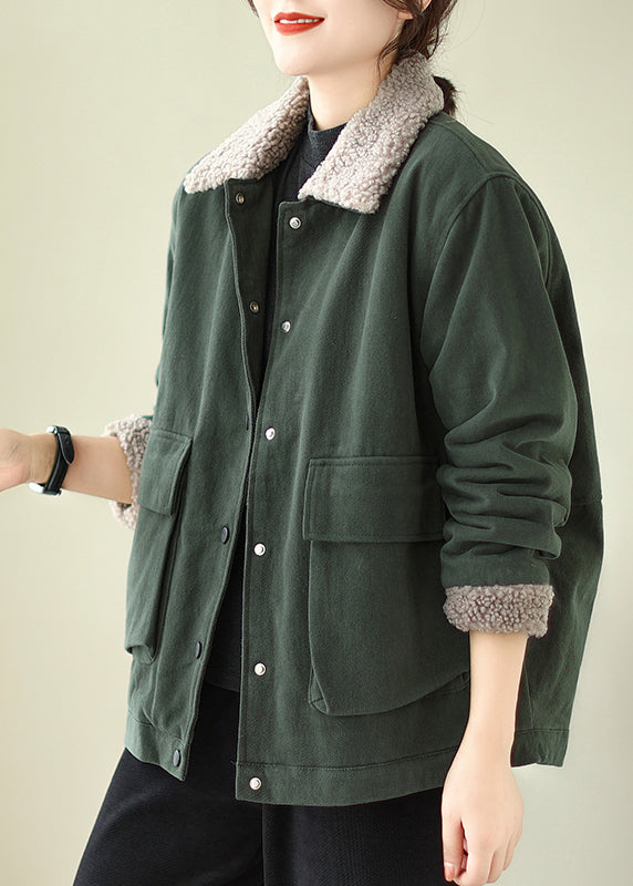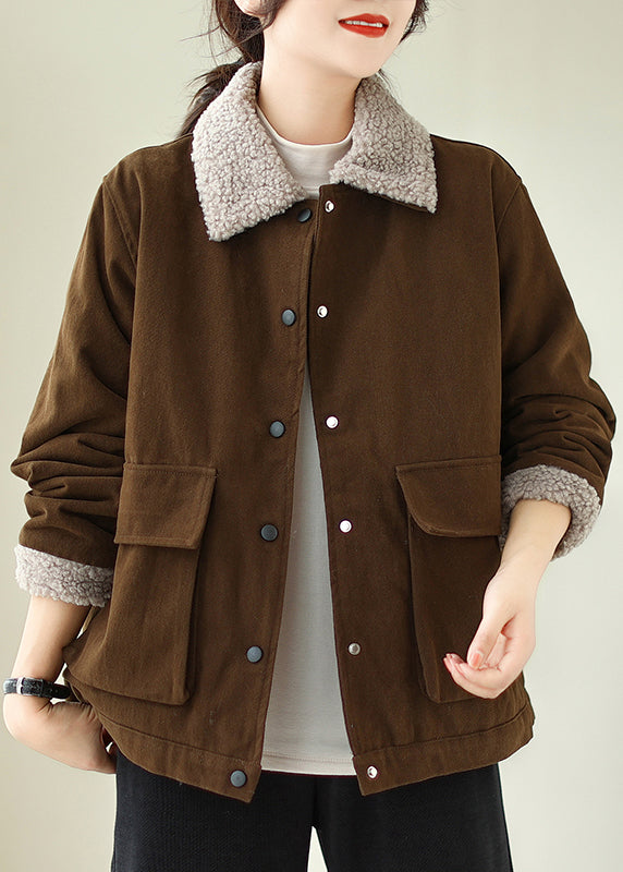 New Coffee Peter Pan Collar Pockets Fleece Wool Lined Jacket Winter