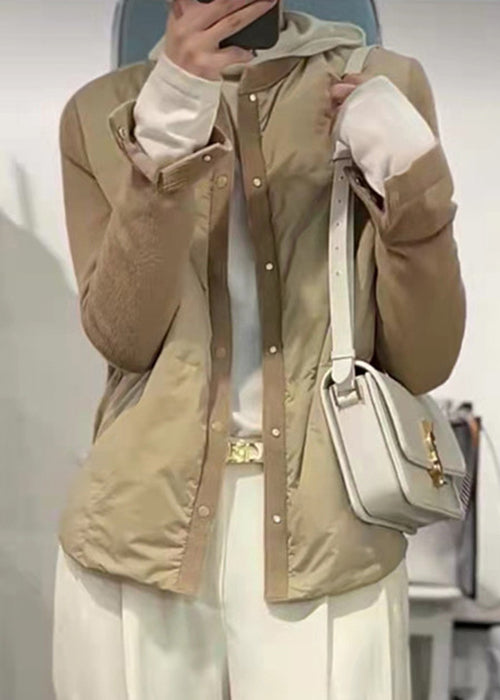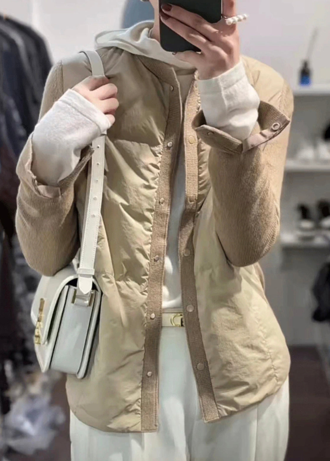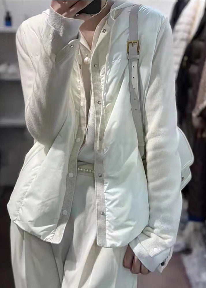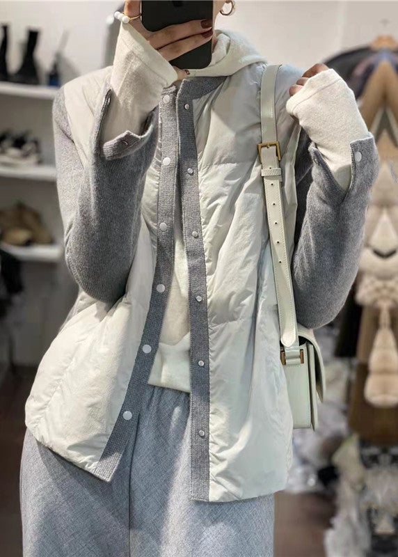 New Grey O Neck Button Duck Down Patchwork Coats Winter