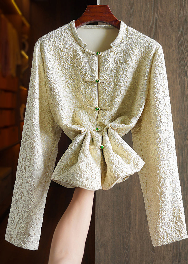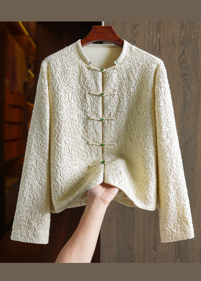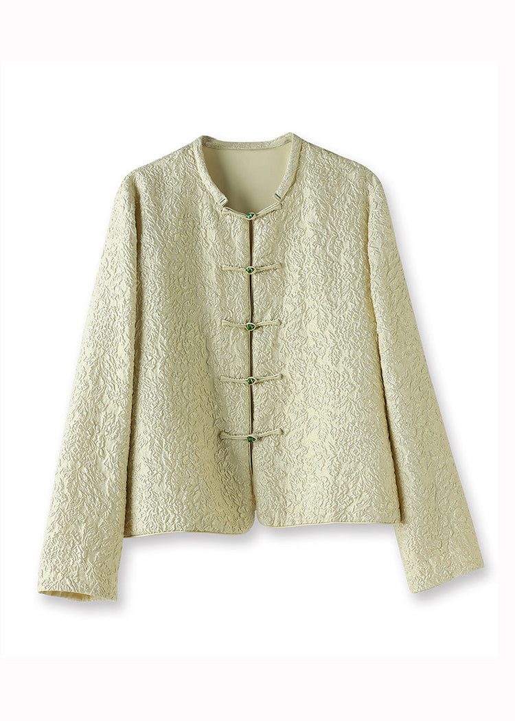 Original Design Beige Yellow Jacquard Button Patchwork Silk Coats Fall