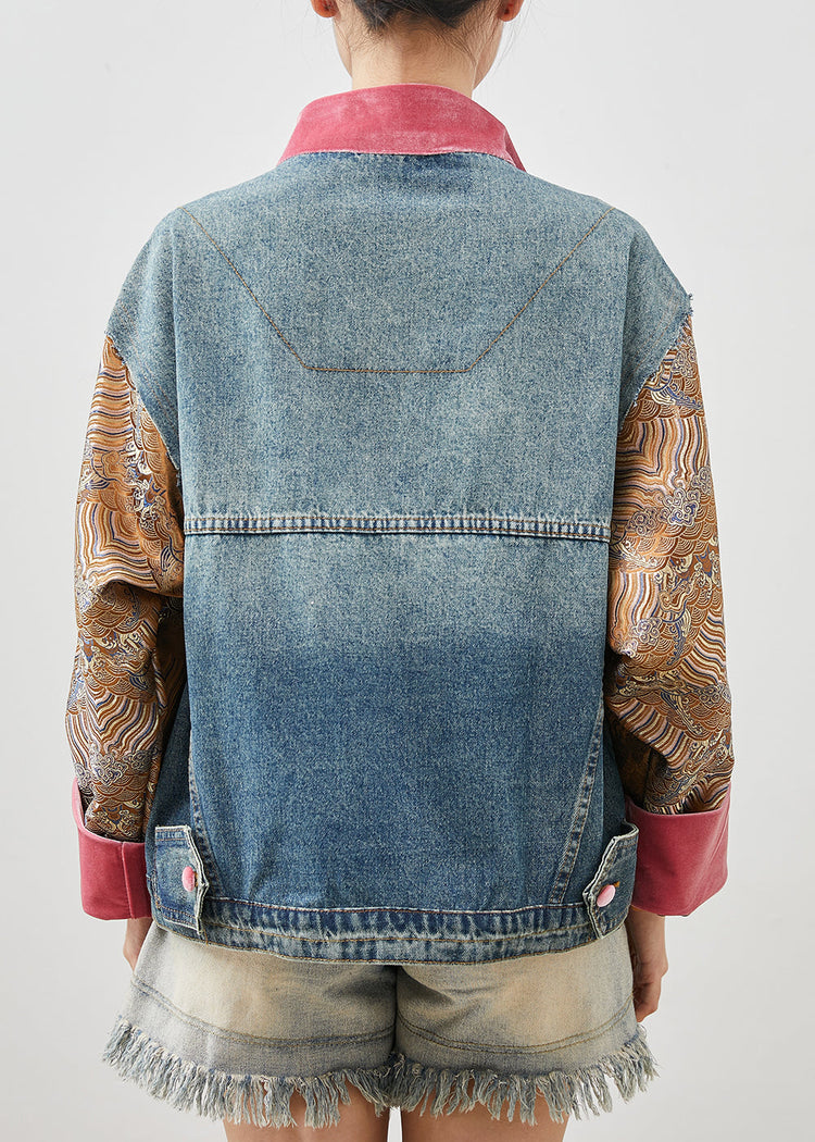 Original Design Blue Oversized Patchwork Denim Jacket Spring