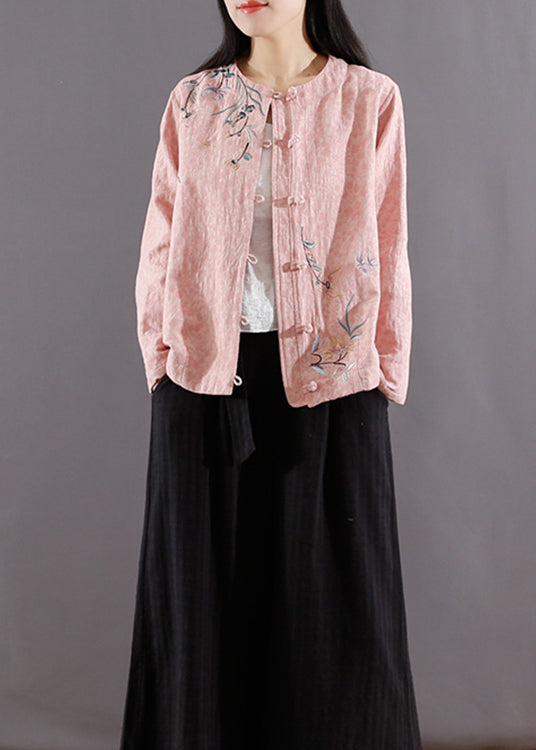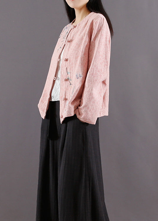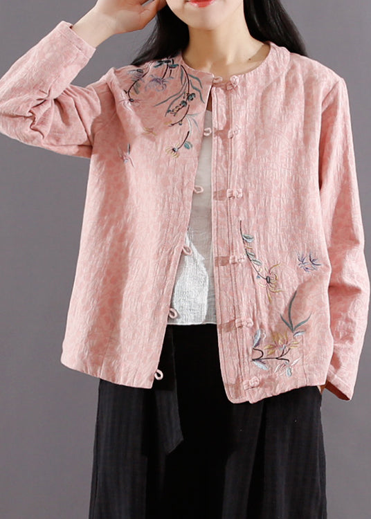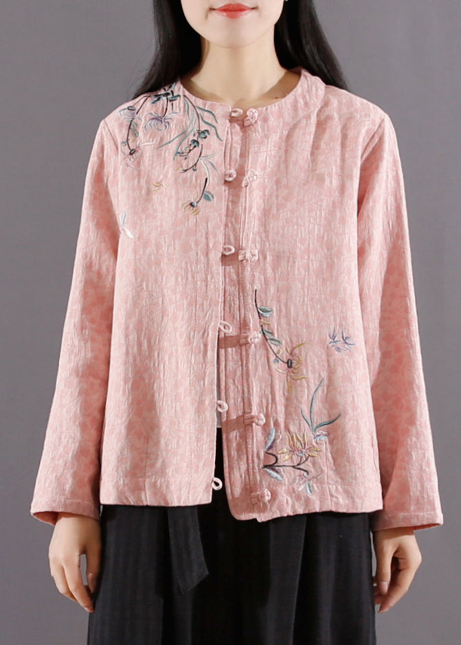 Pink Chinese Button Patchwork Cotton Coat Jacquard Long Sleeve