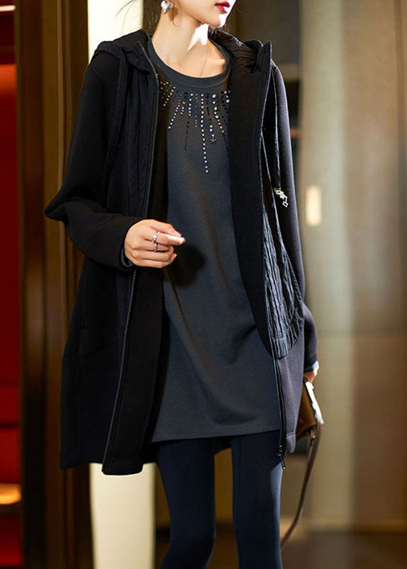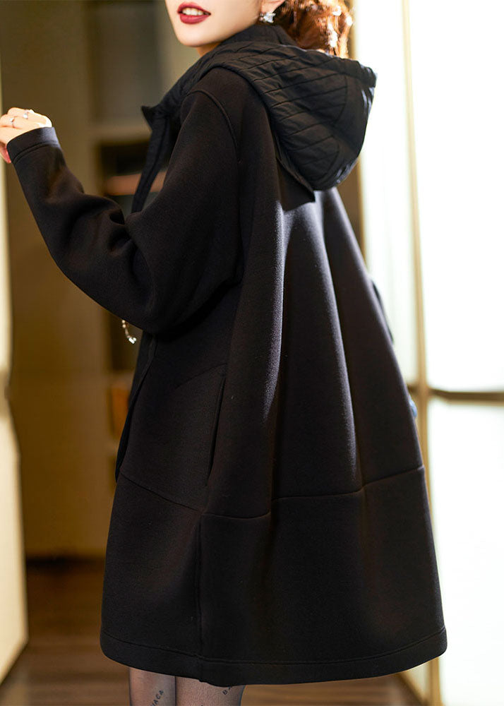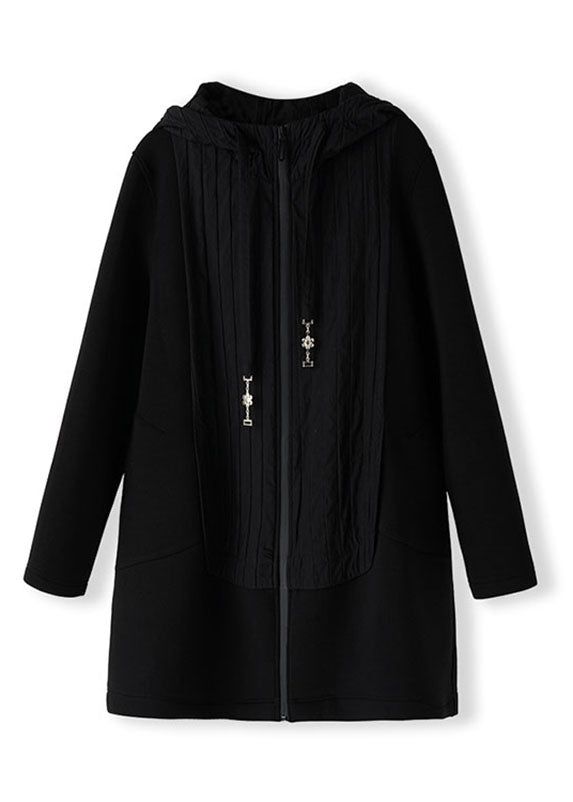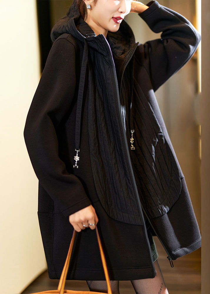 Plus Size Black Zippered Patchwork Thick Hoodies Coats Fall