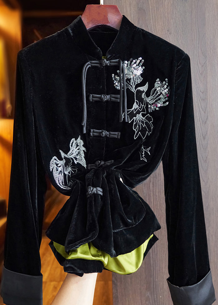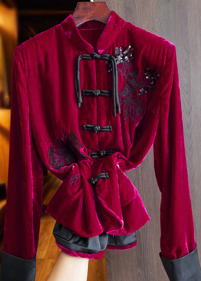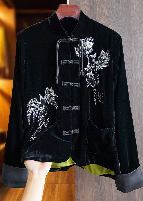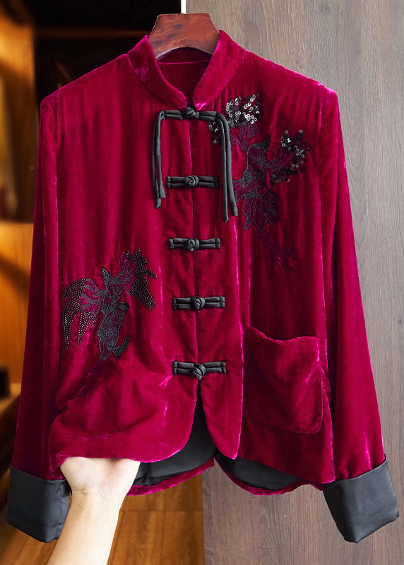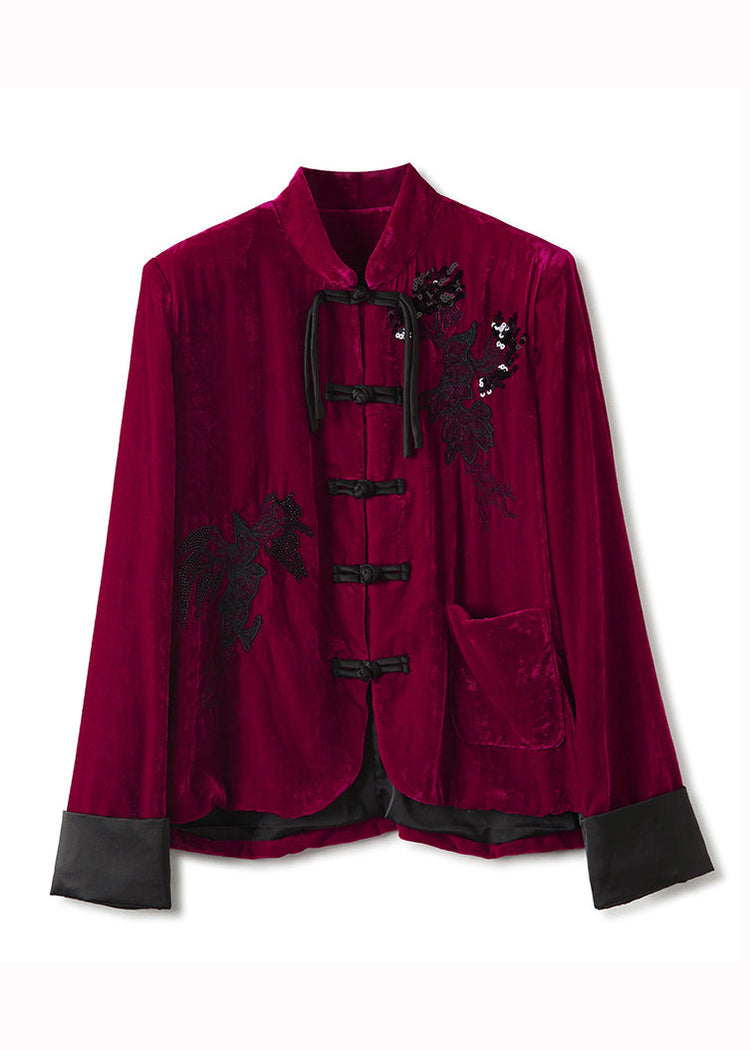 Retro Rose Embroideried Sequins Patchwork Silk Velour Coats Fall