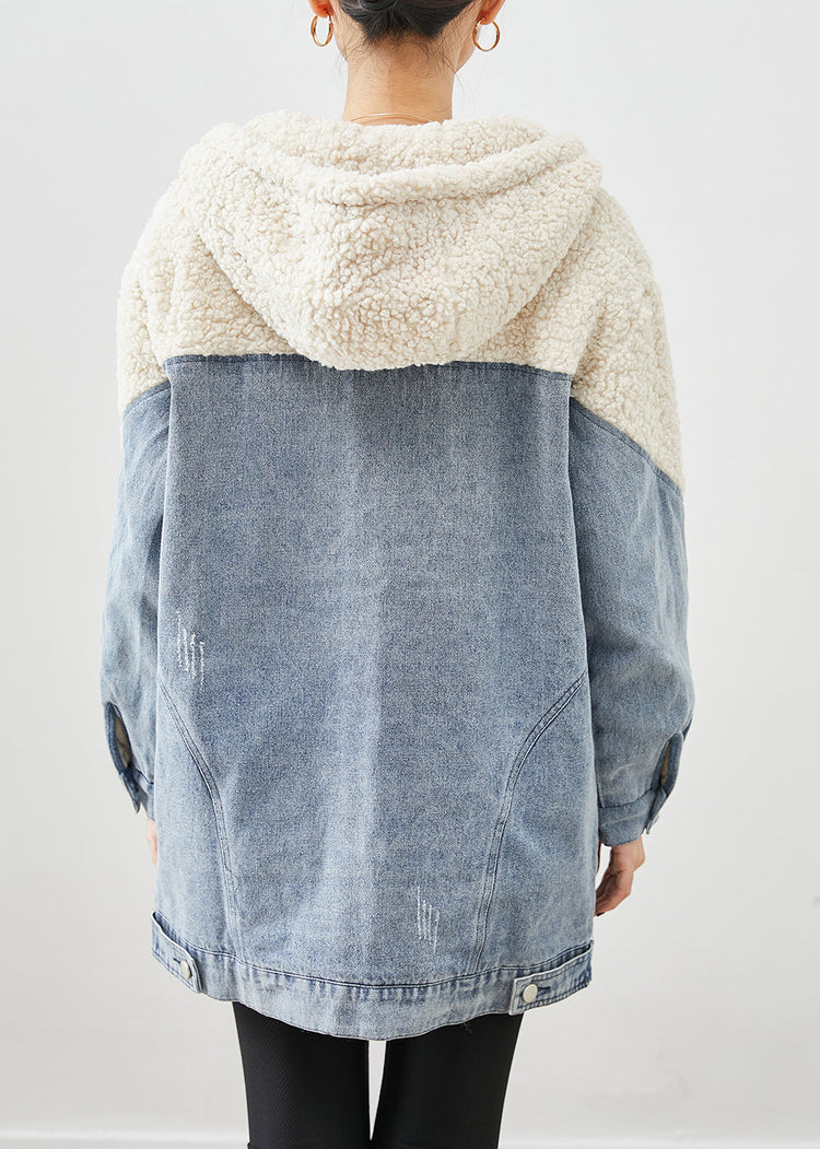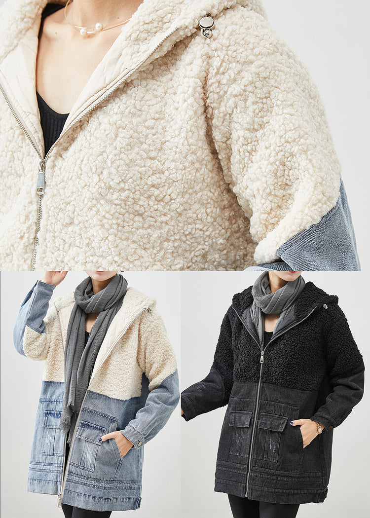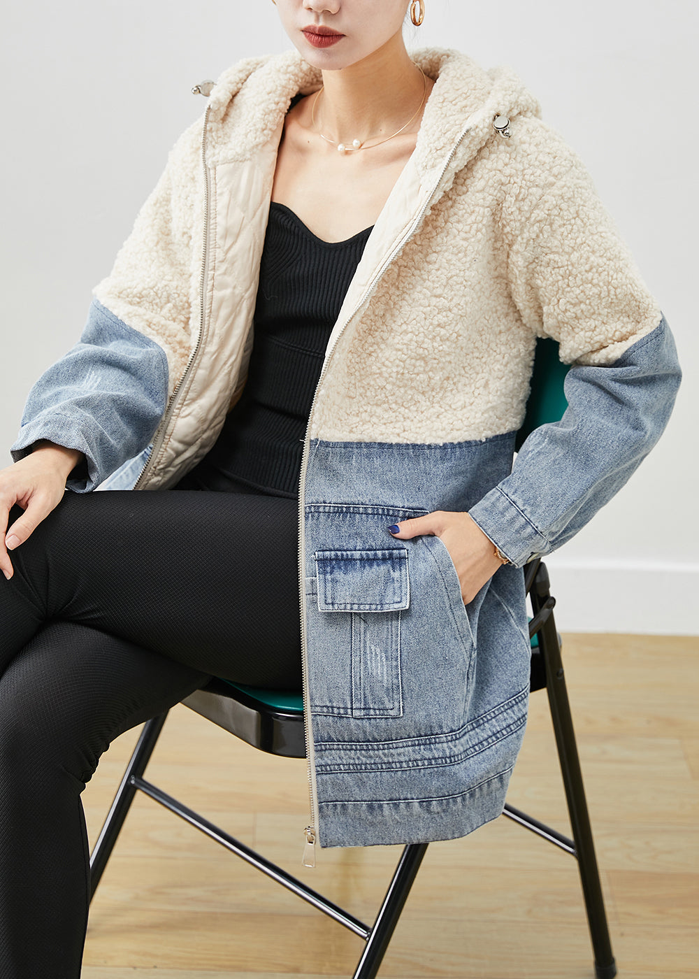 White Patchwork Woolen Fine Cotton Filled Puffers Jackets Hooded Winter