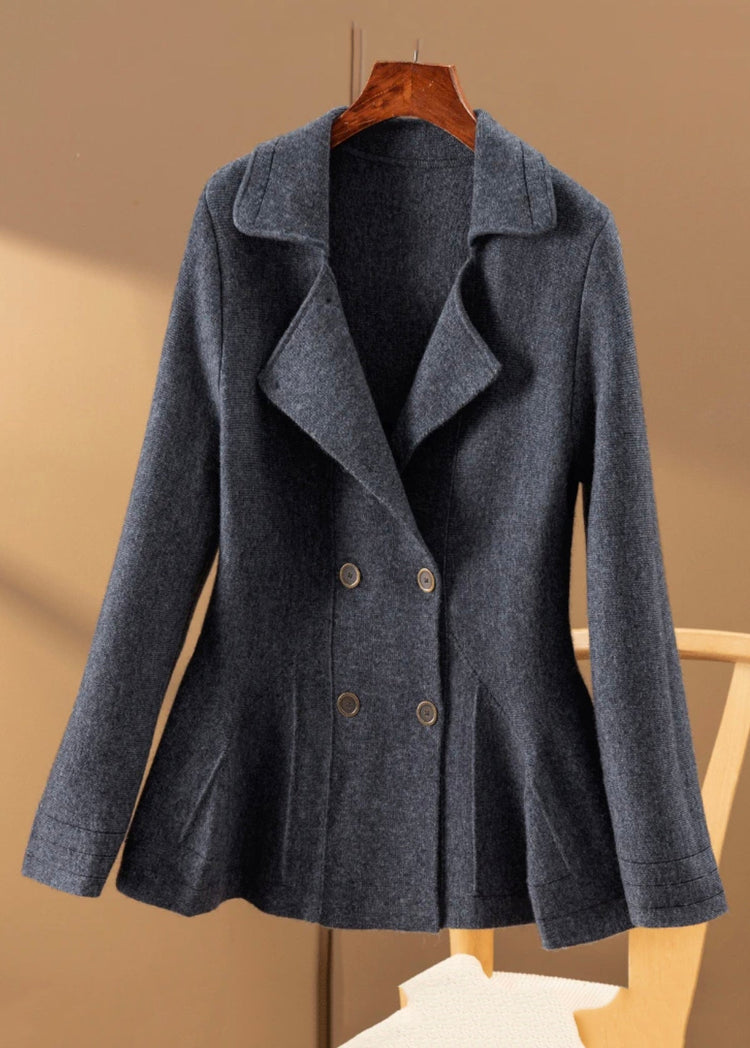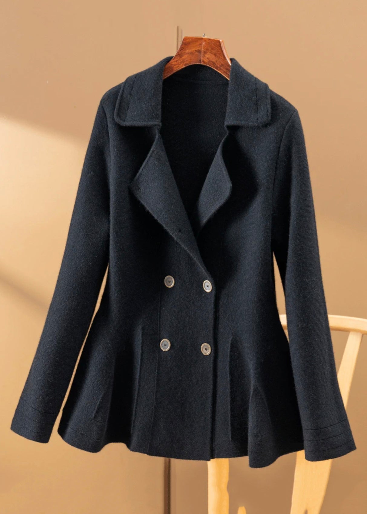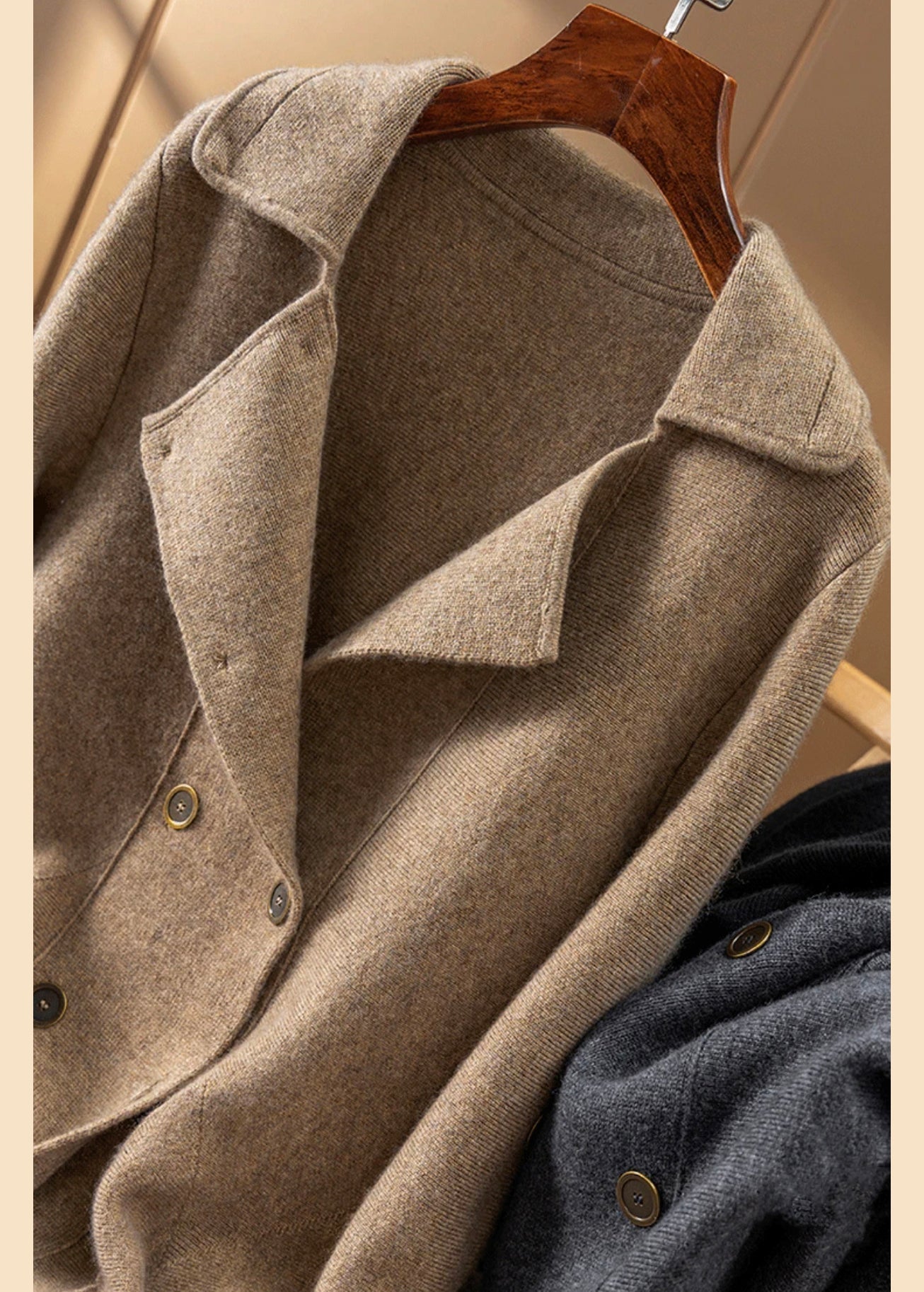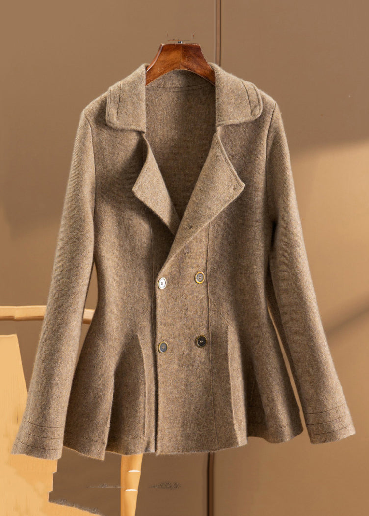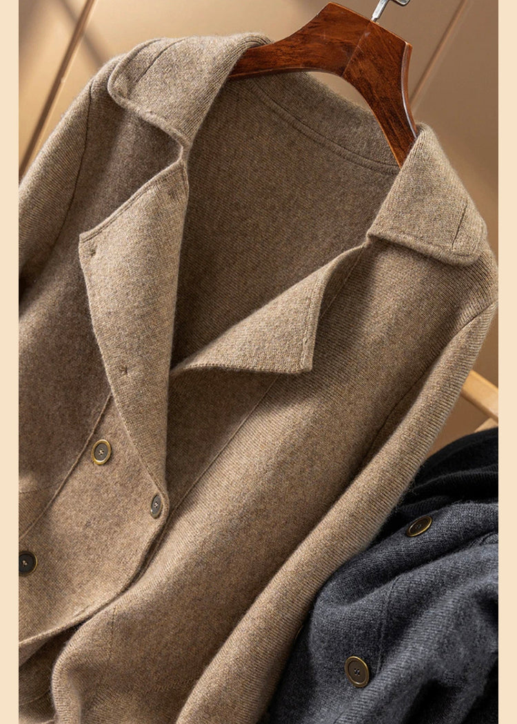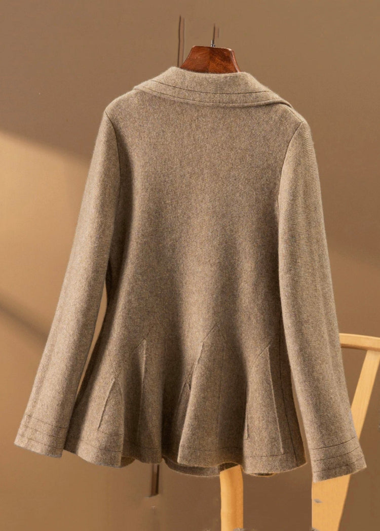 Women Camel Peter Pan Collar Button Patchwork Woolen Coat Fall