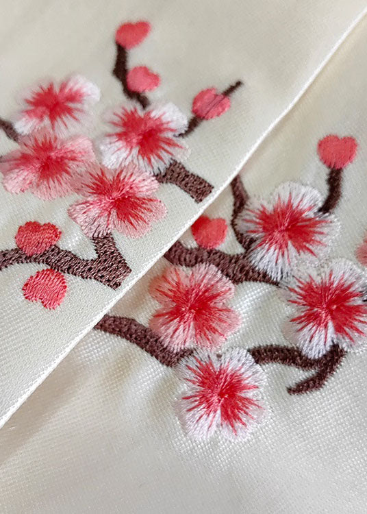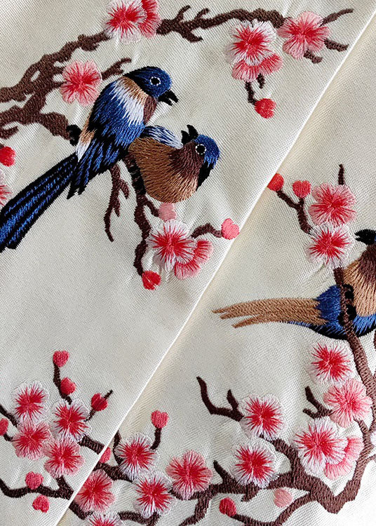 Women White Embroidered Patchwork Silk Outwear Long Sleeve