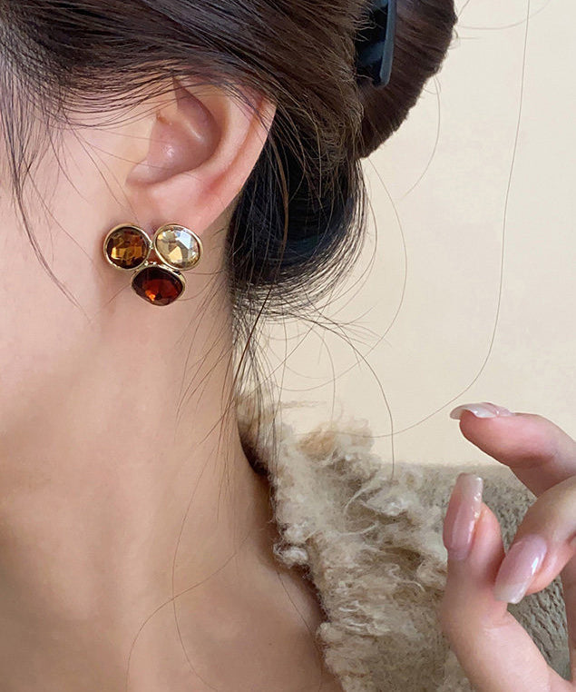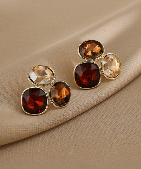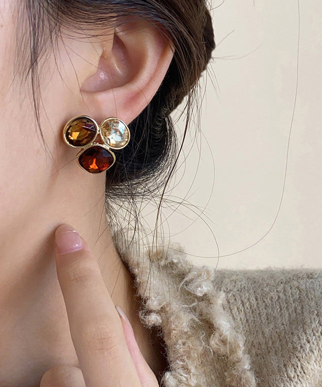 Stylish Colorblock Gem Stone Copper Stud Earrings