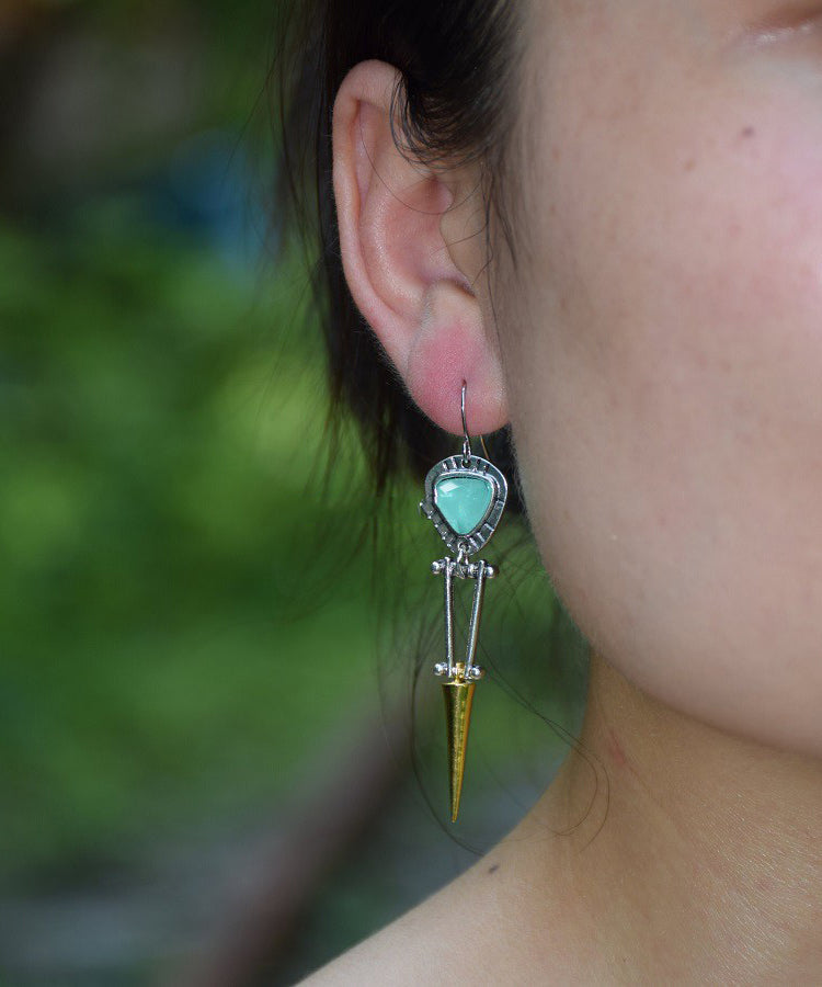 Unique Colorblock Alloy Jade Awl Drop Earrings