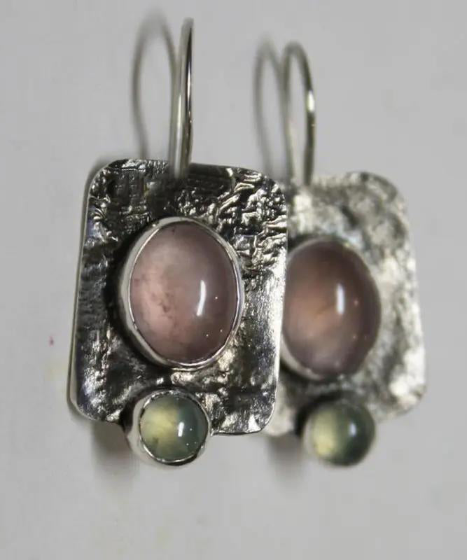 Vintage Colorblock Alloy Gem Stone Geometry Drop Earrings