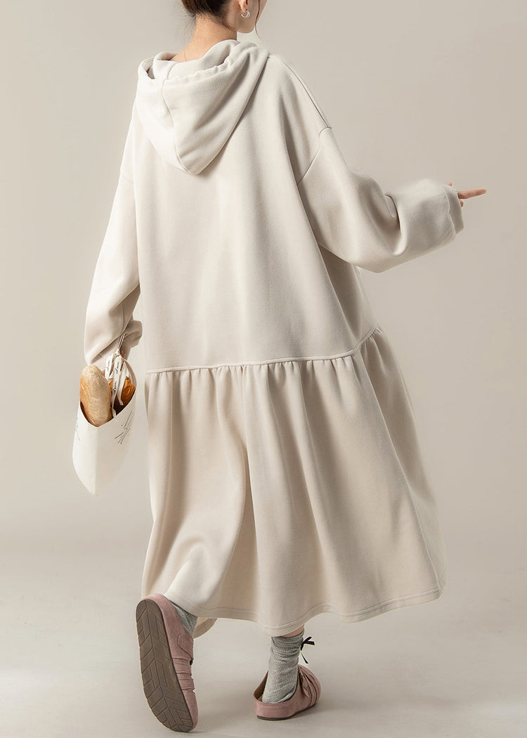 Plus Size Apricot Patchwork Cotton Hooded Dresses Fall