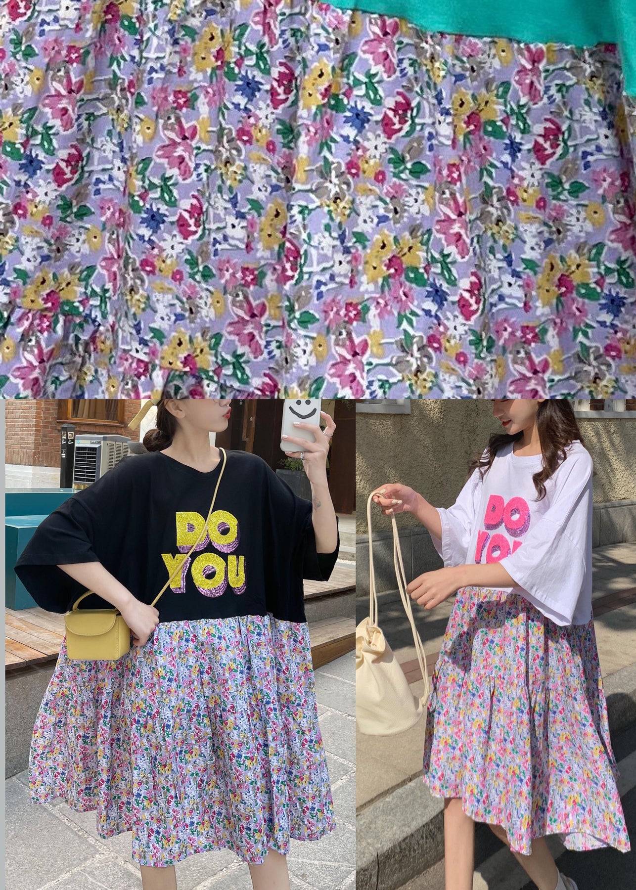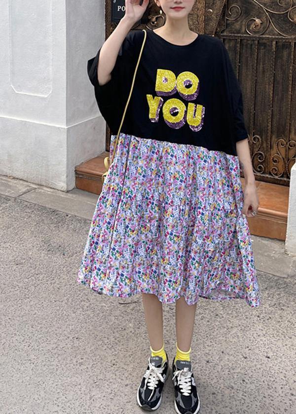 Plus Size Black Patchwork Cotton Print Loose Summer Party Dress