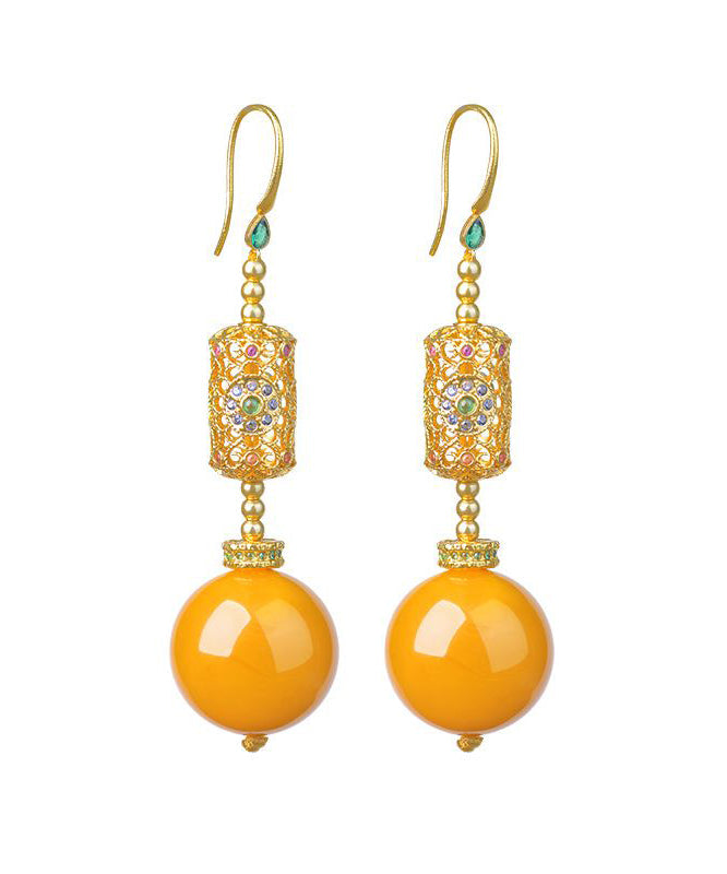 Chinese Style Gold Sterling Silver Overgild Amber Beeswax Drop Earrings