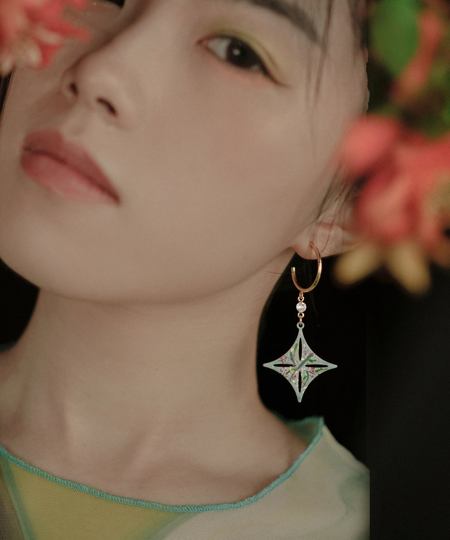 Chinese Style Silk Sterling Silver Asymmetrical Drop Earrings