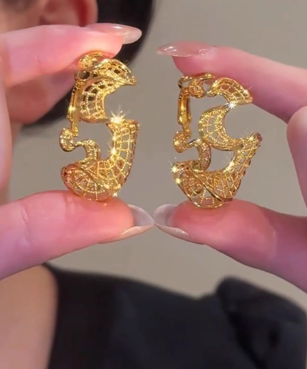 Casual Gold Copper Hollow Out Floral Hoop Earrings