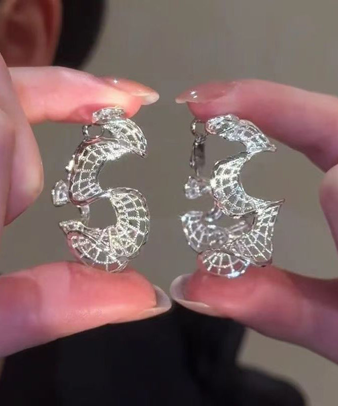 Unique Grey Alloy Zircon Crystal Hoop Earrings