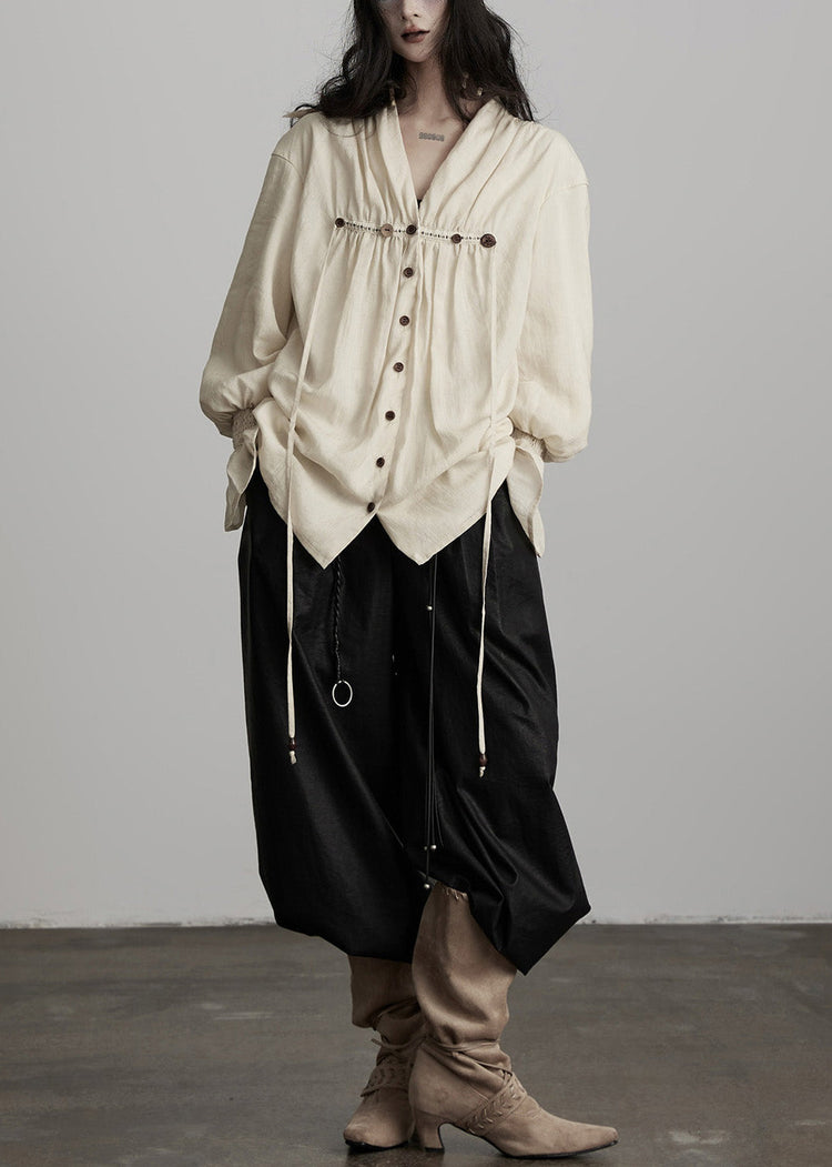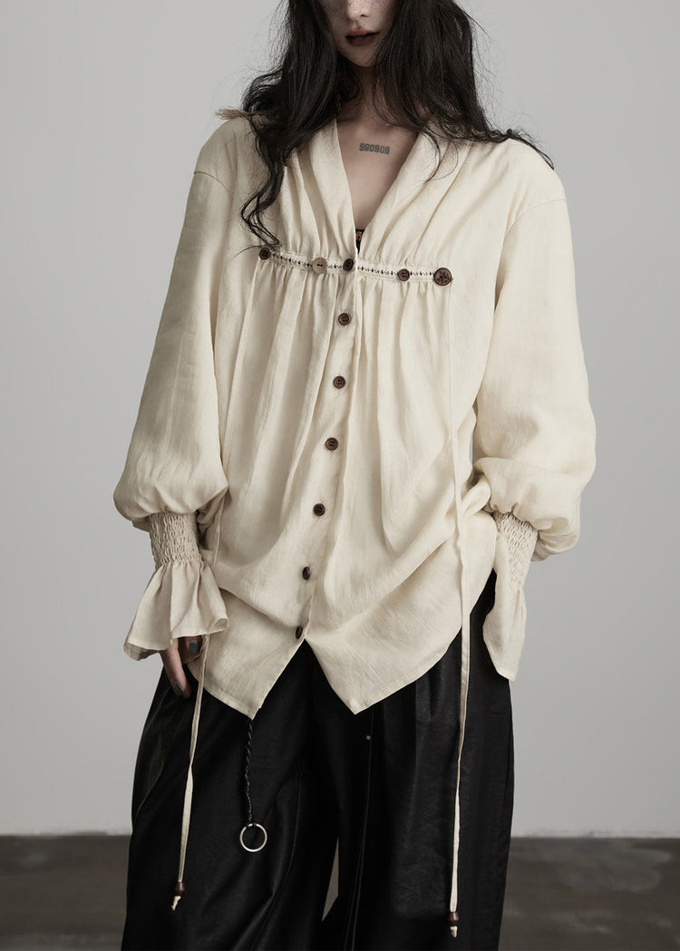 Handmade White Embroidered Button Cotton Blouse Top Spring