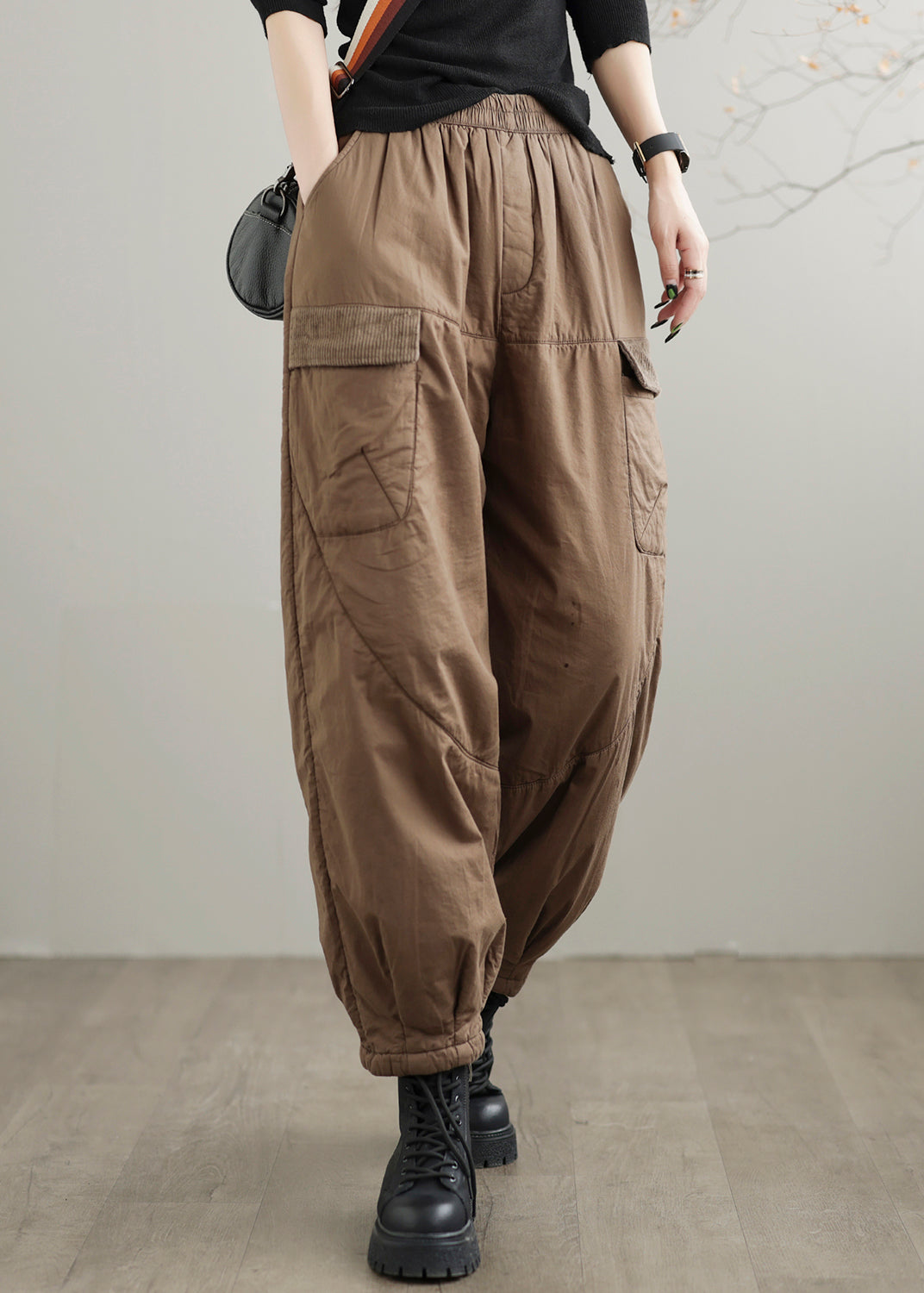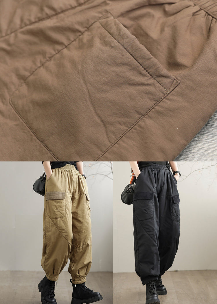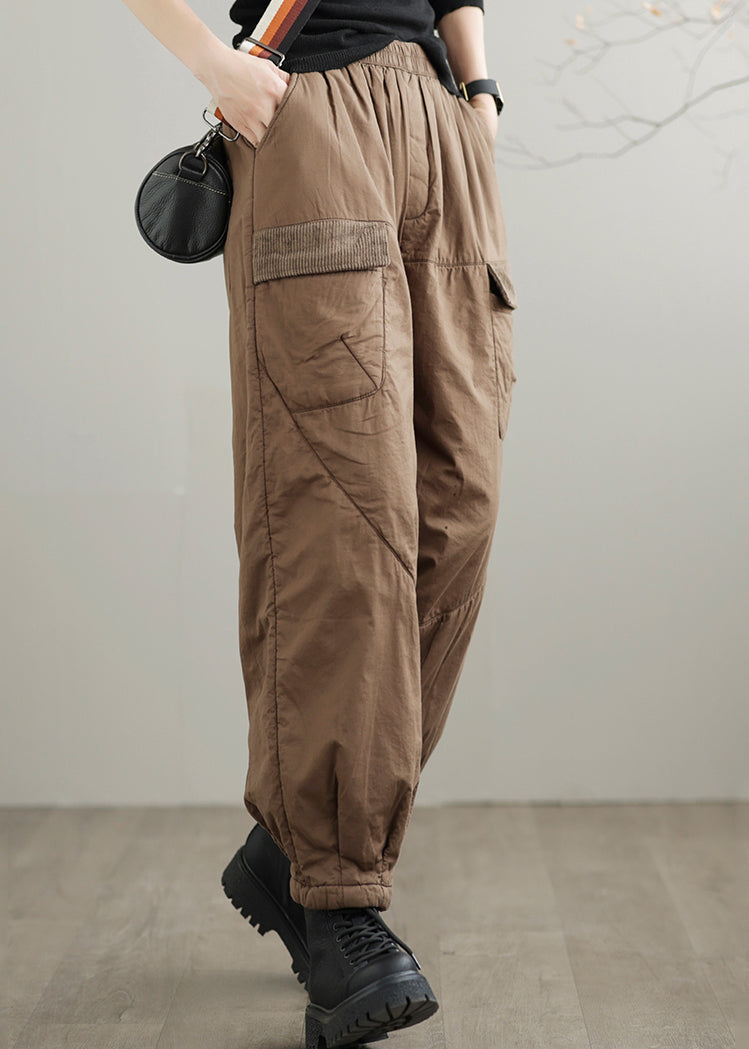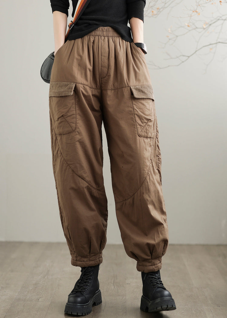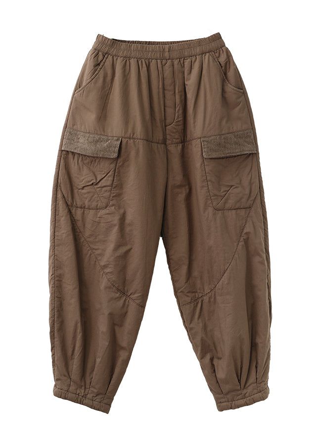 Coffee Pockets Cozy Fine Cotton Filled Pants Elastic Waist Winter
