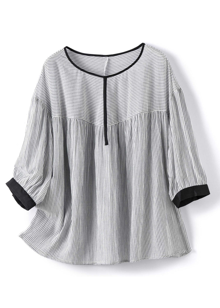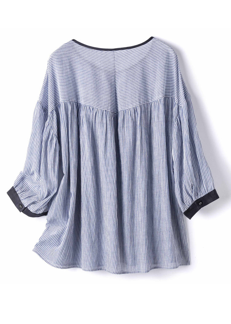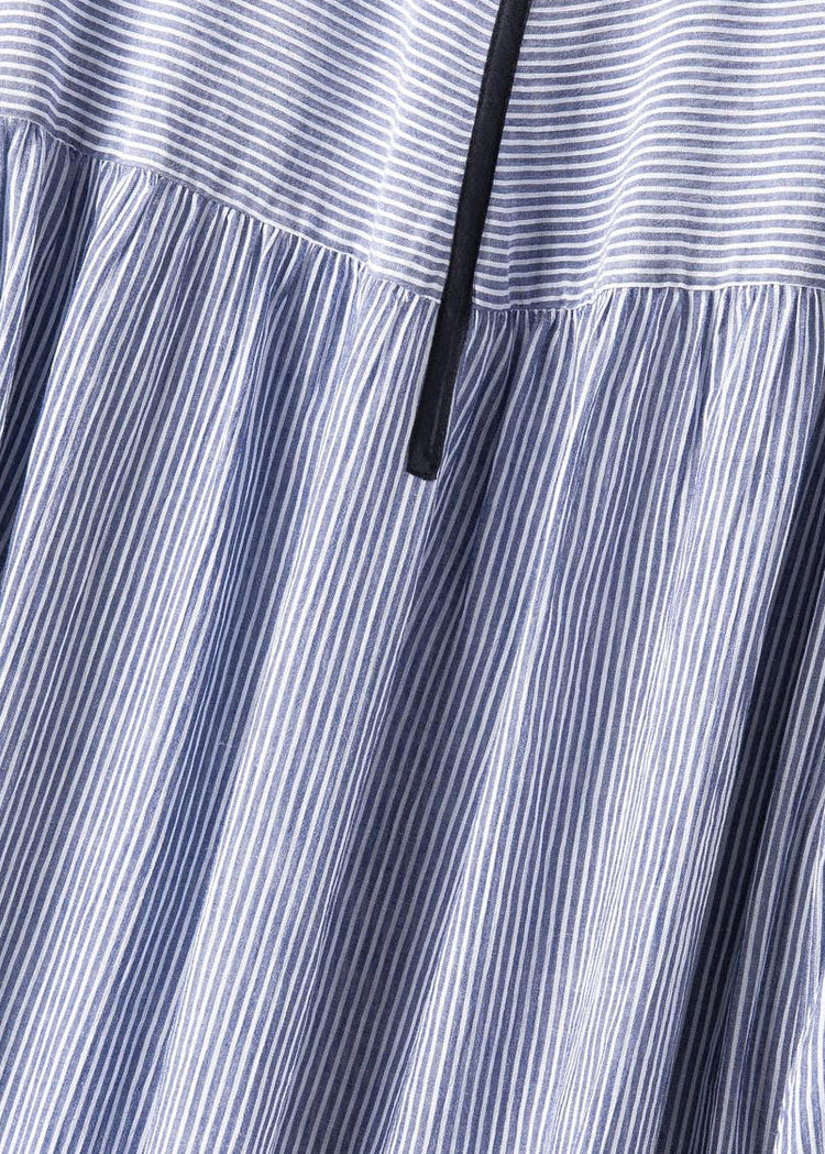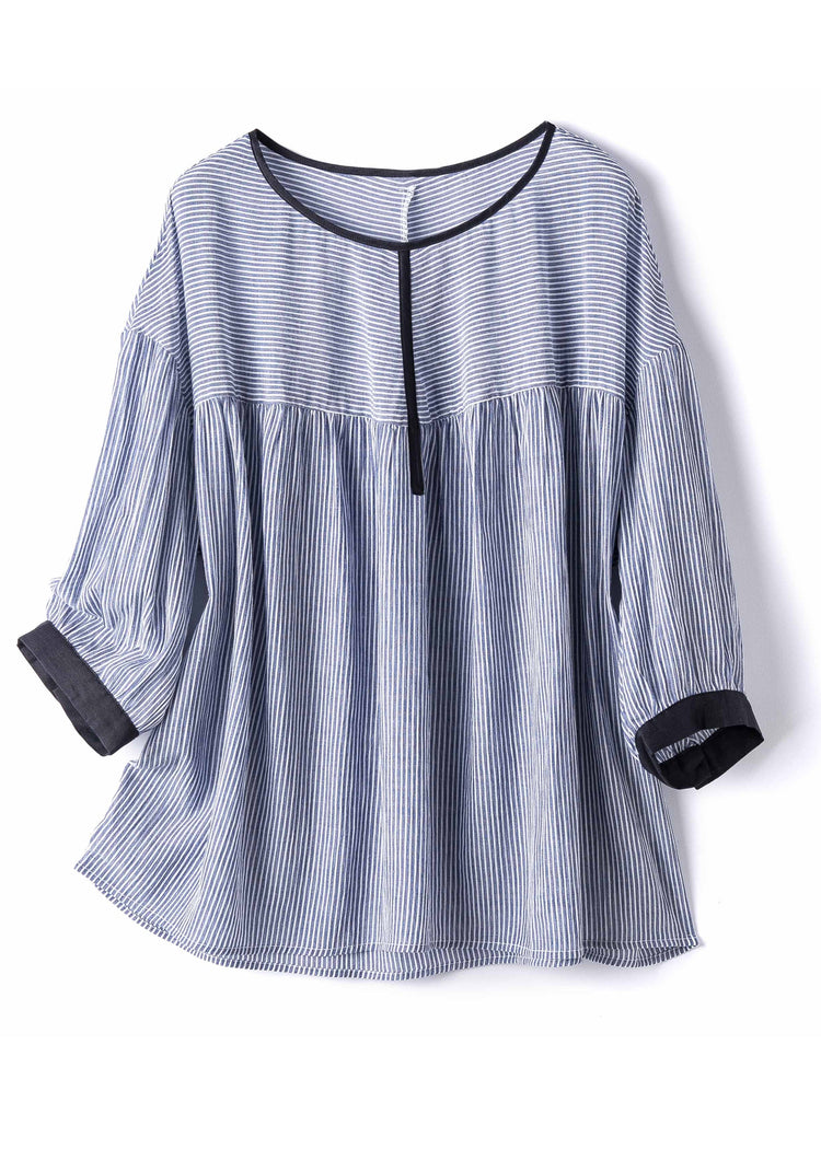 Simple Blue Striped O Neck Cotton T Shirt Bracelet Sleev