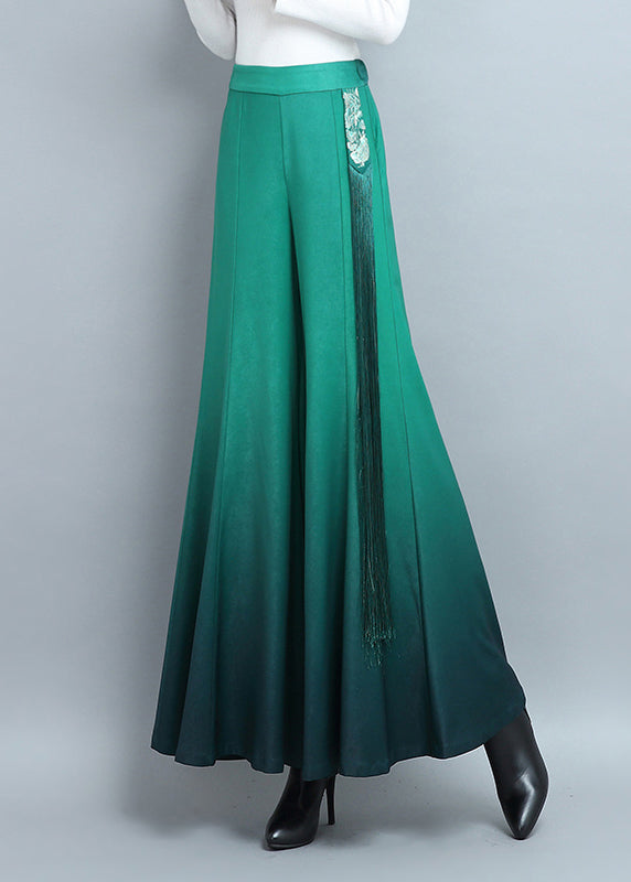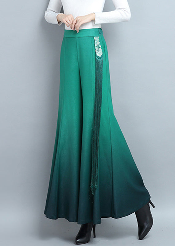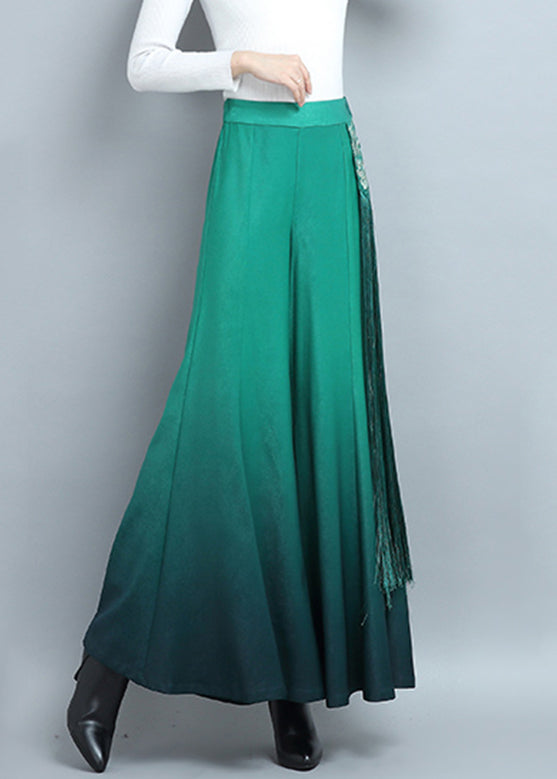 New Green Tasseled High Waist Cotton Pants Spring