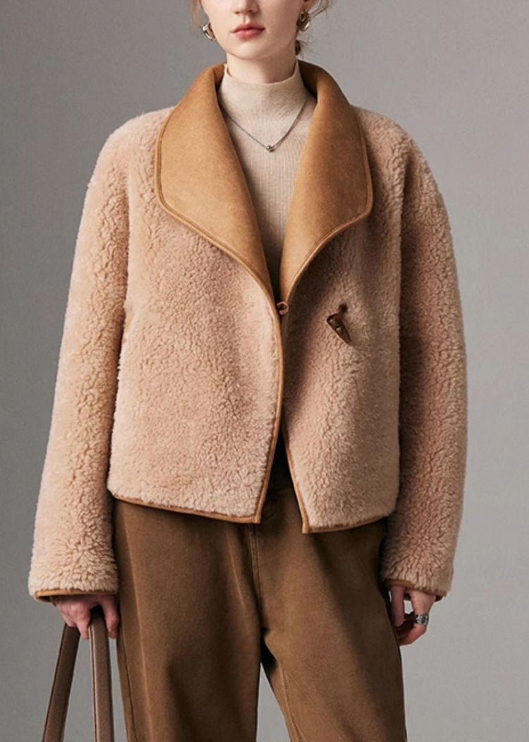 French Light Camel Fluffy Button Pockets Woolen Coat Winter