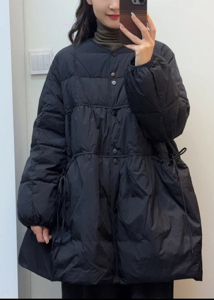 Modern Black Oversized Duck Down A Line Coats Winter