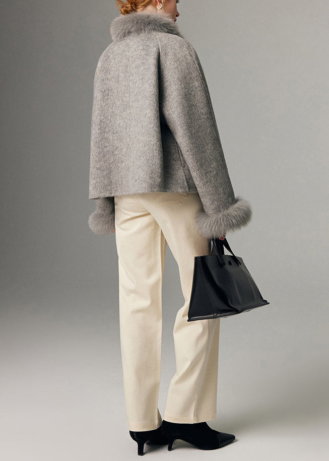 Plus Size Grey Oversized Patchwork Fox Fur Wool Cardigan Winter