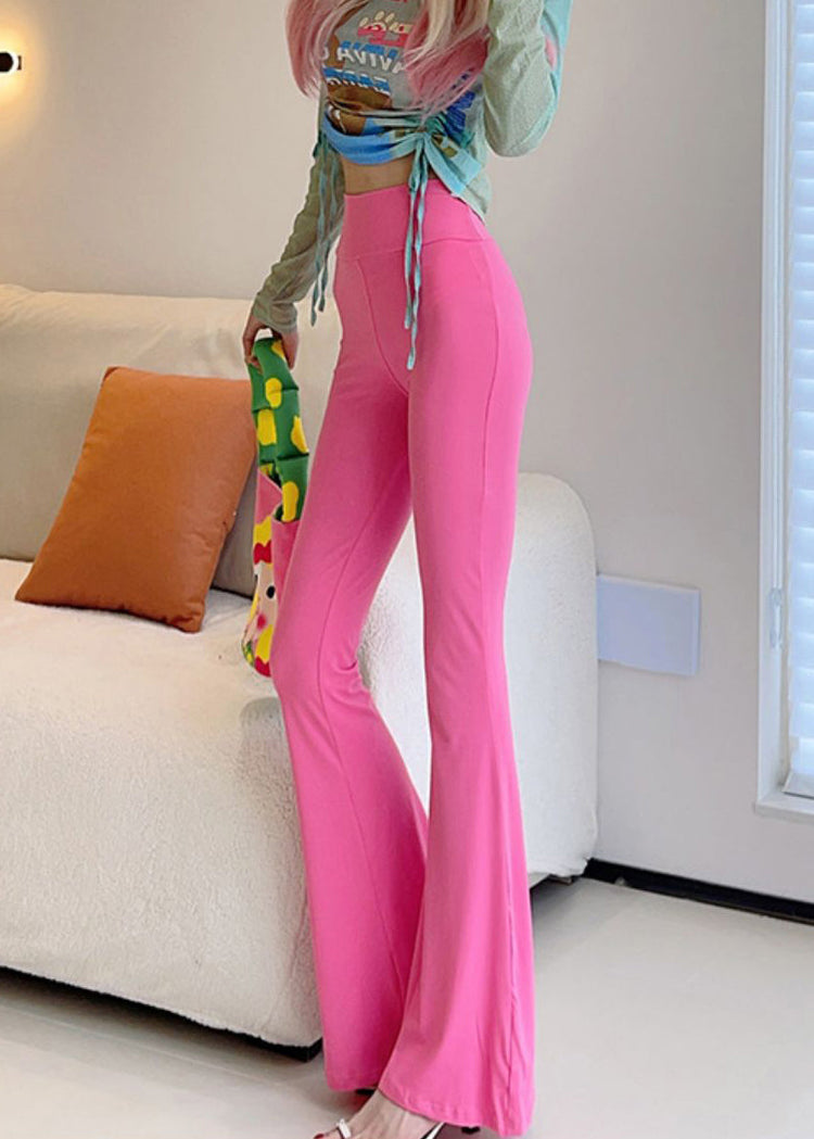 Stylish Pink Butt Scrunch High Waist Nylon Flare Bottoms
