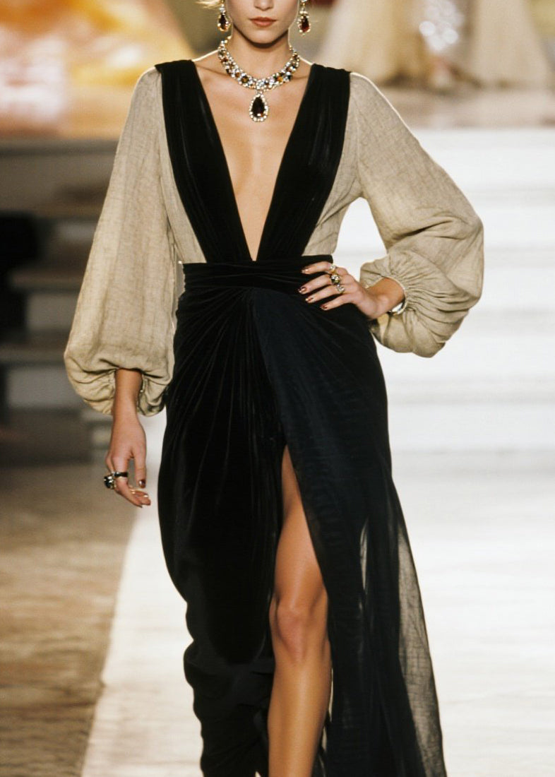 Elegant Colorblock V Neck Patchwork Velvet Long Dress Fall